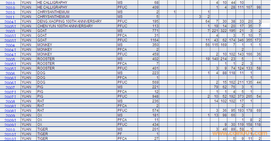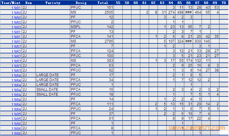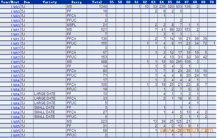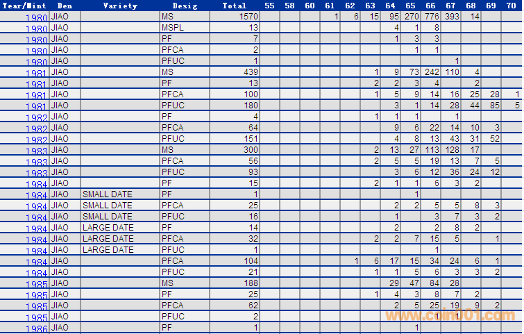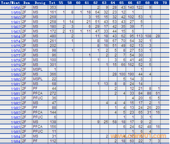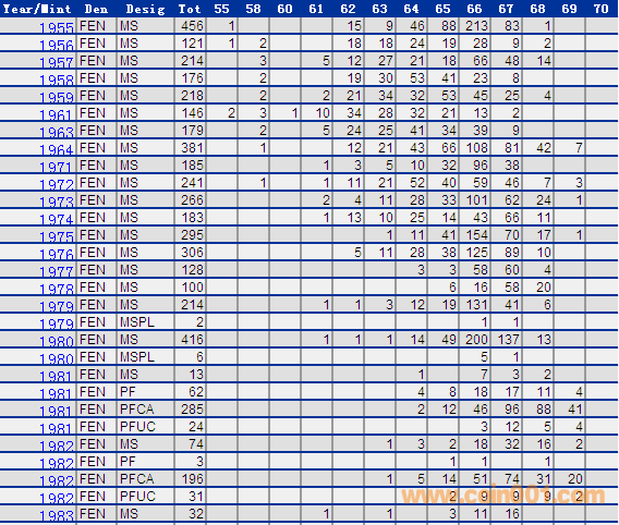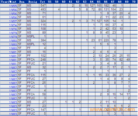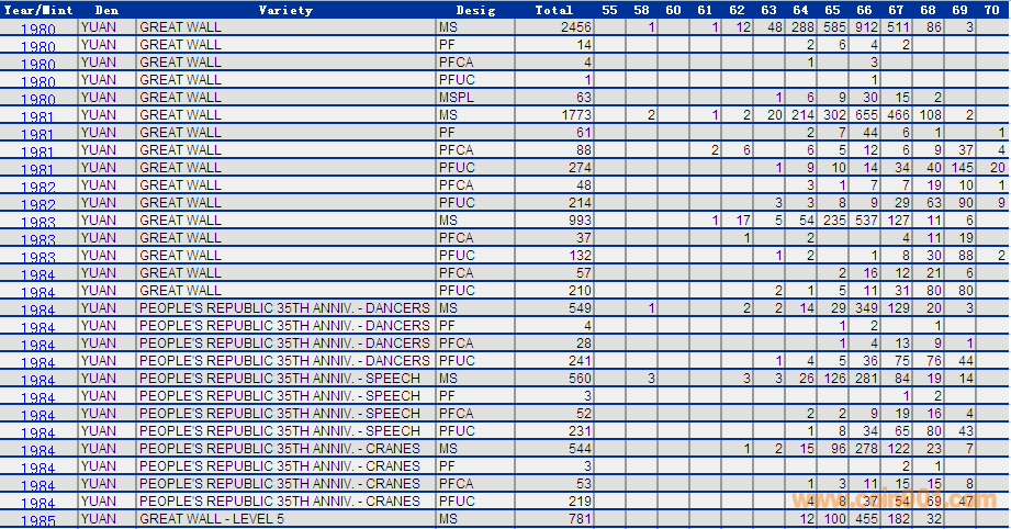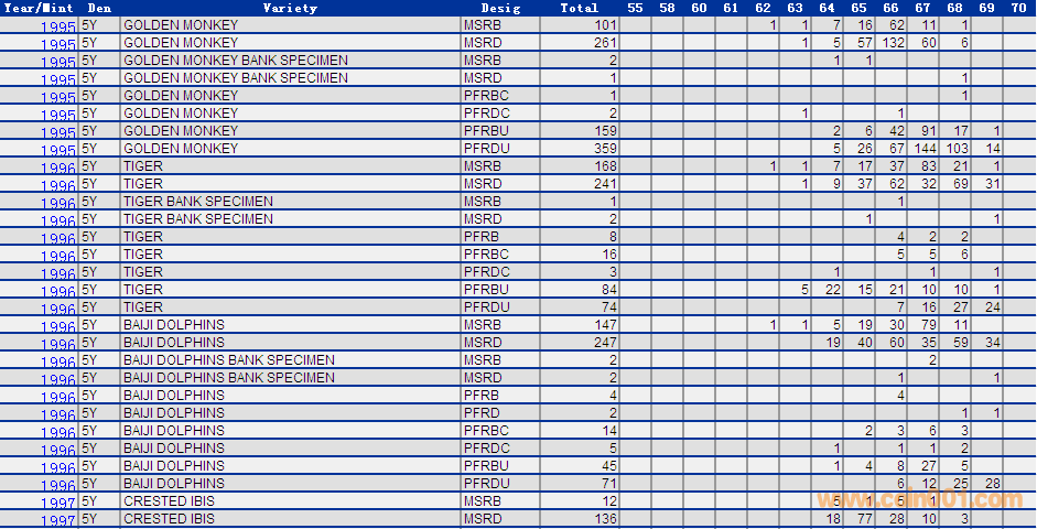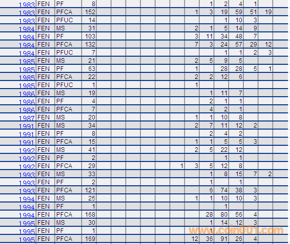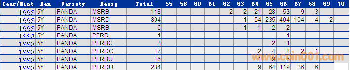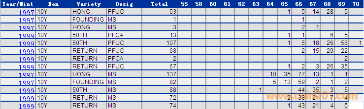 NGC硬幣評級分?jǐn)?shù)分布 ..