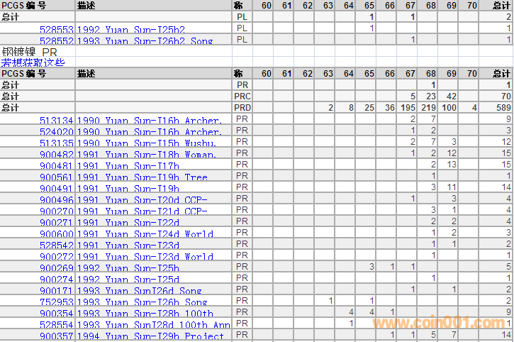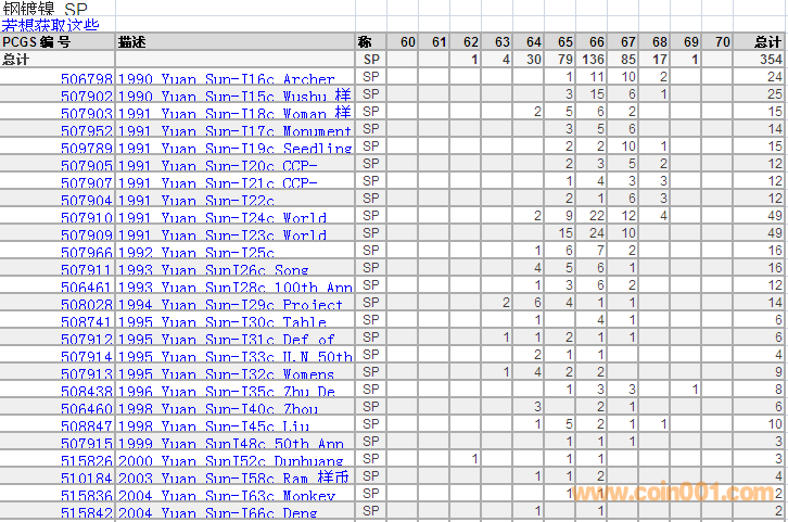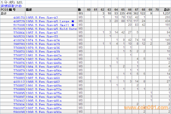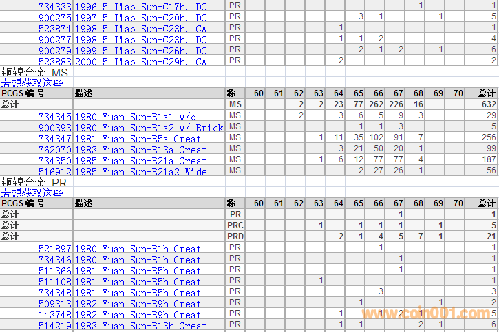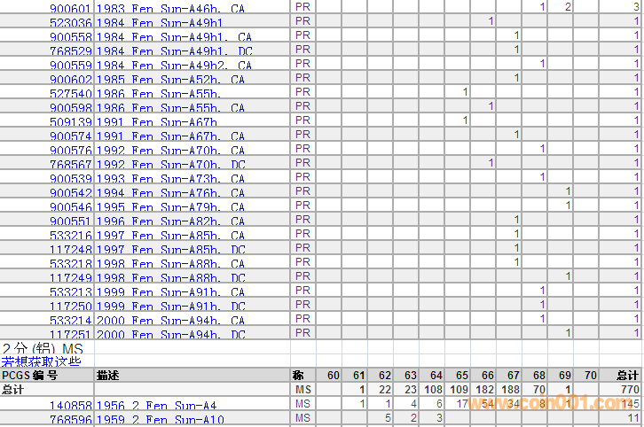 PCGS硬幣評(píng)級(jí)分?jǐn)?shù)分布 ..
