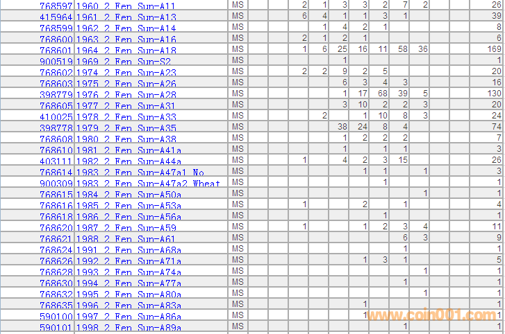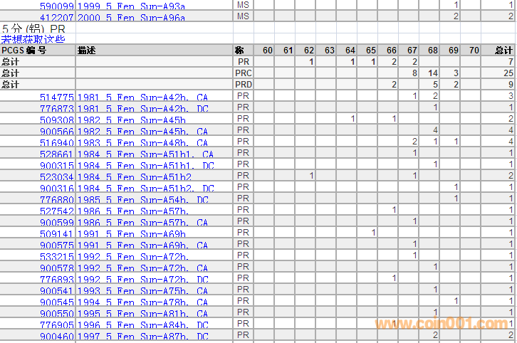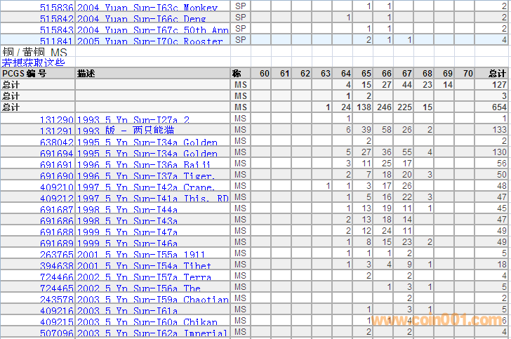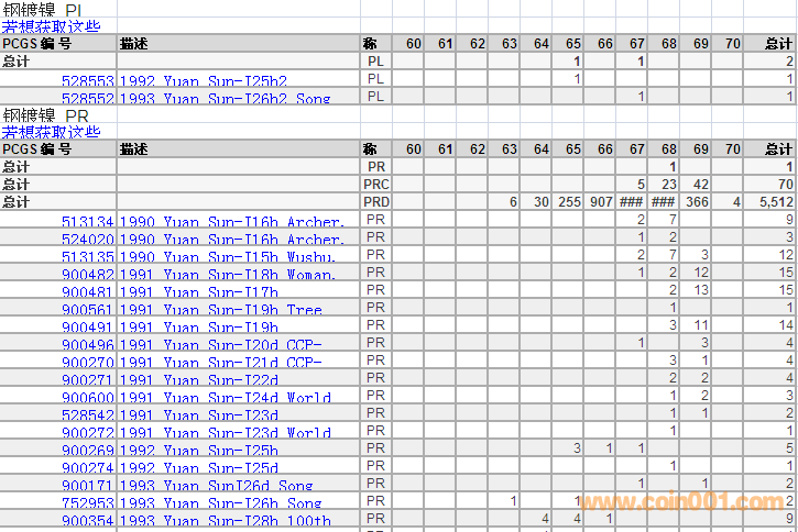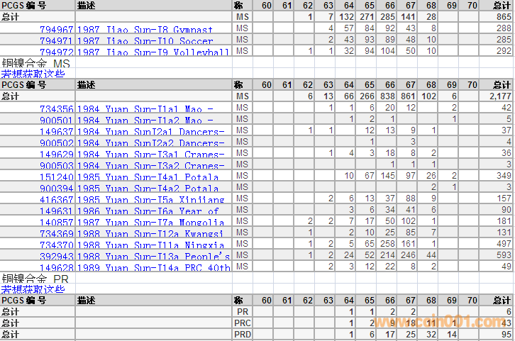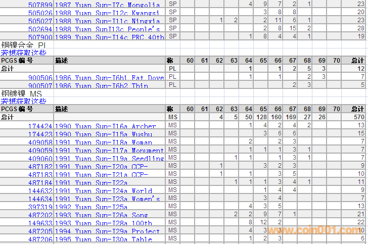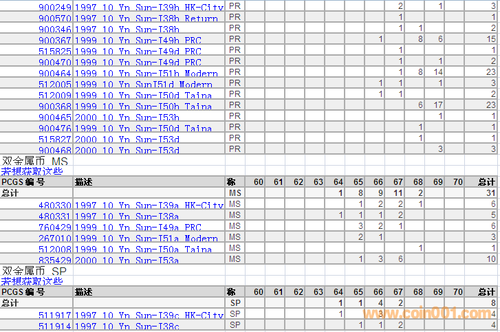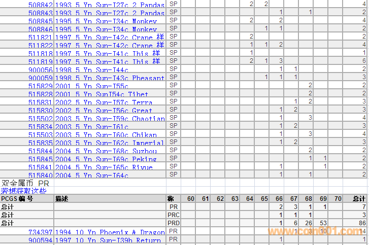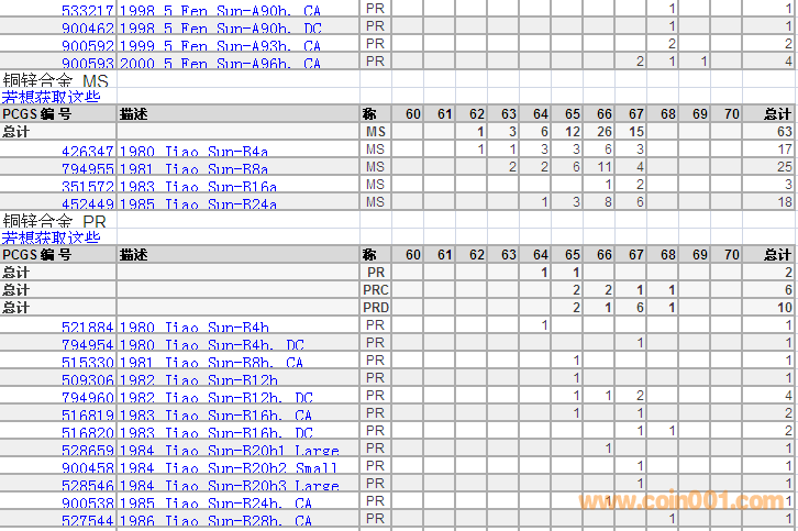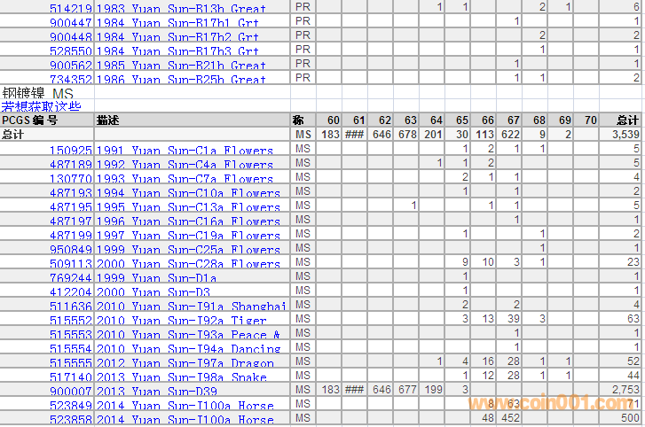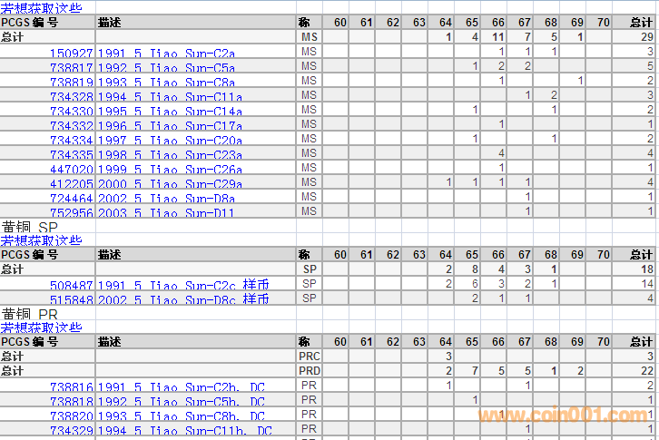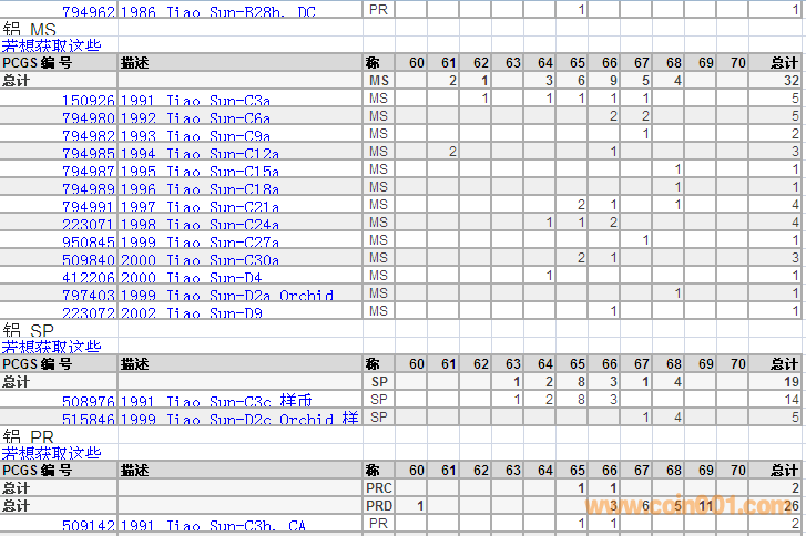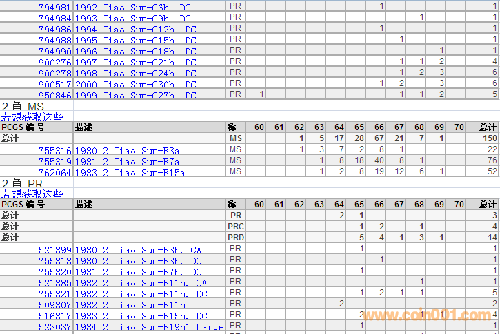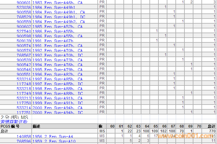 PCGS硬幣評(píng)級(jí)分?jǐn)?shù)分布 ..