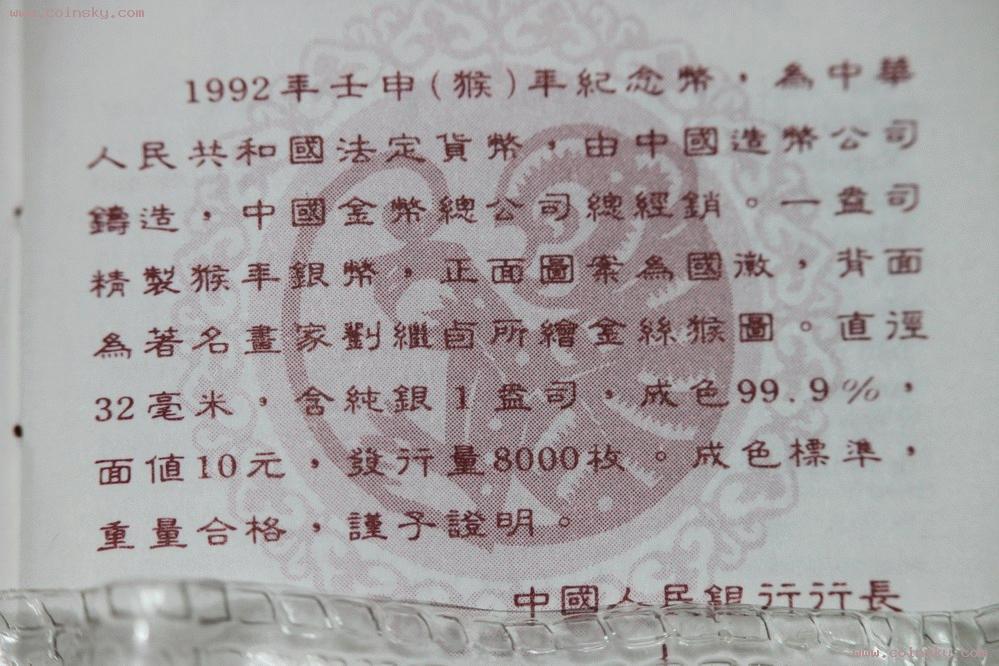 售 發(fā)行量8000枚的 1992 ..