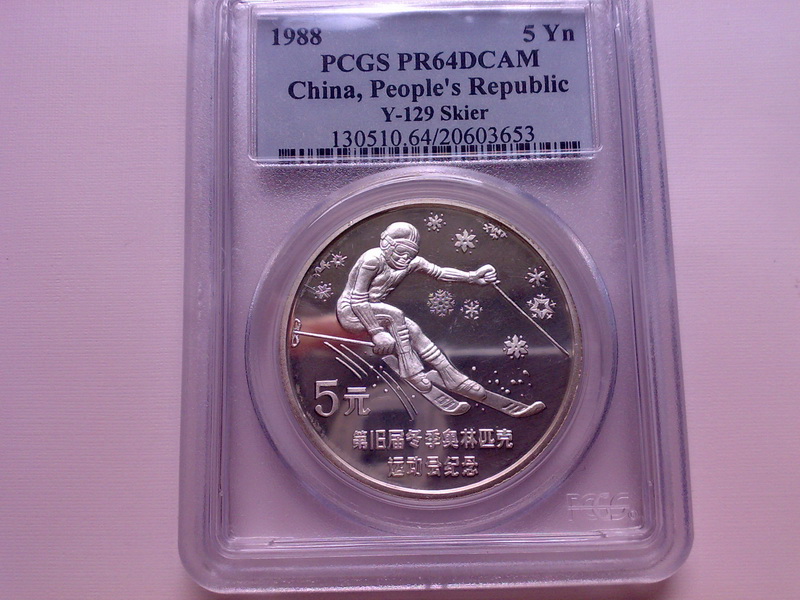 為紀(jì)念第15屆冬奧會(huì),我國(guó)于1988年發(fā)行一款面值5元銀幣。由于造幣等有關(guān)部門(mén)工作人員疏忽?“第15屆”鐫刻成“第16屆”。當(dāng)發(fā)現(xiàn)錯(cuò)誤后,央行沒(méi)有收回錯(cuò)版幣,也沒(méi)有再重新發(fā)行。該幣發(fā)行價(jià)為人民幣120元,曾在1997年4月20日“97中國(guó)嘉德春季拍賣(mài)會(huì)”上,以人民幣12100元成交(拍品第1604號(hào),已含10%附加費(fèi))。正面圖案:正面圖案為國(guó)徽、中國(guó)奧委會(huì)會(huì)徽并刊“中華人民共和國(guó)”中文字樣及年號(hào),背面圖案:背面圖案為男子滑降并刊“第16屆冬季奧林匹克運(yùn)動(dòng)會(huì)紀(jì)念”中文字樣及面額。