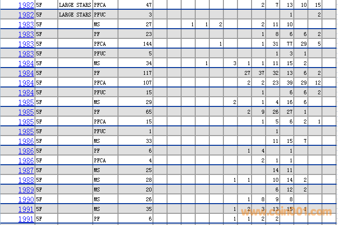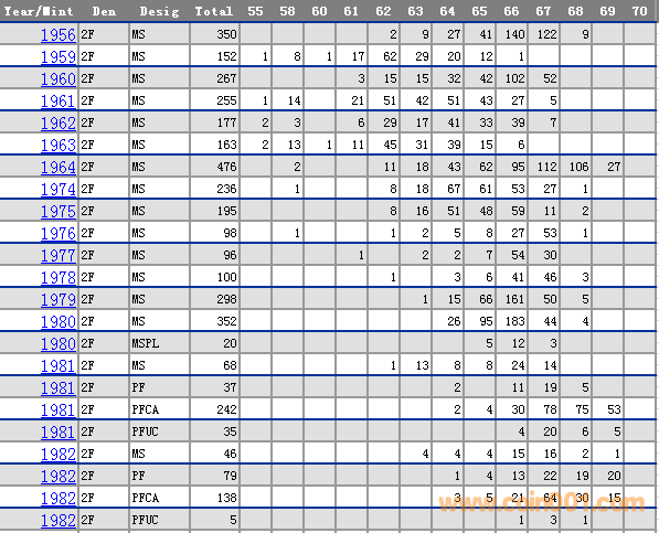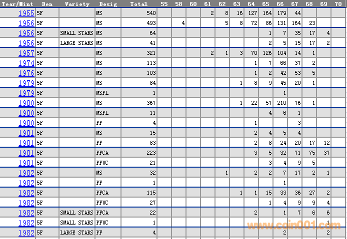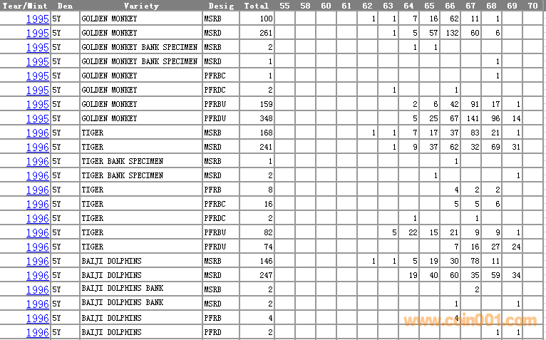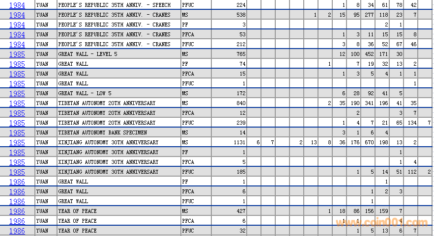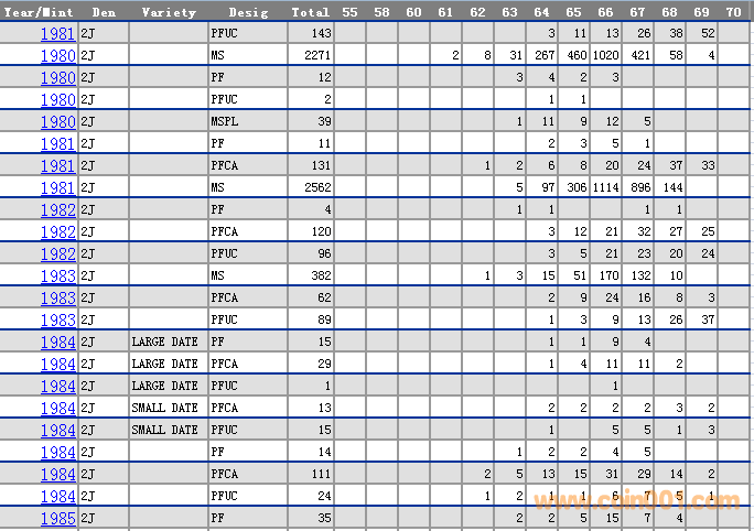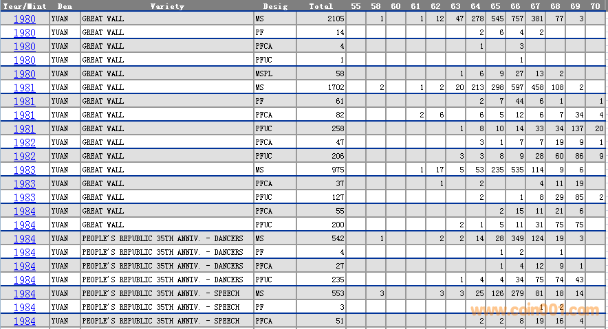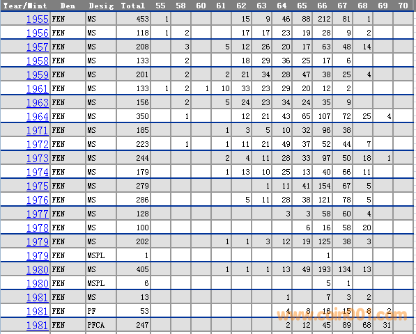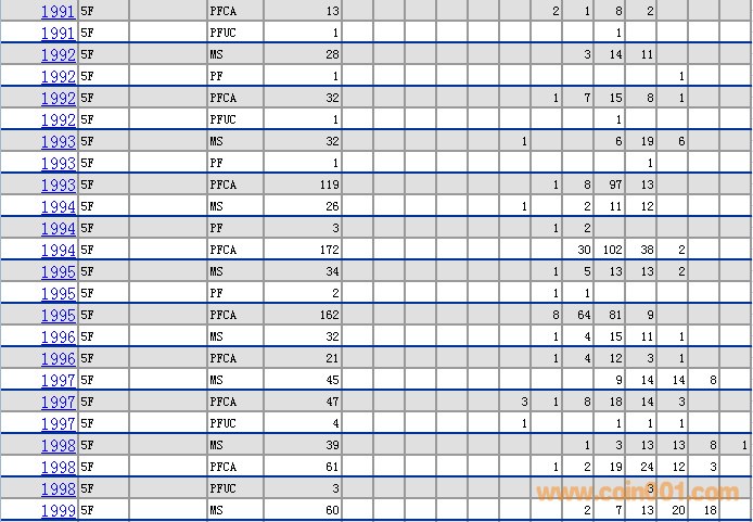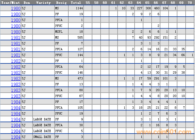NGC硬幣評級分數(shù)分布 ..