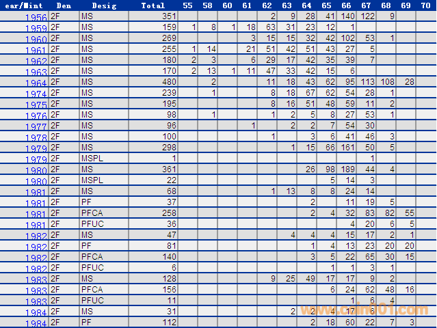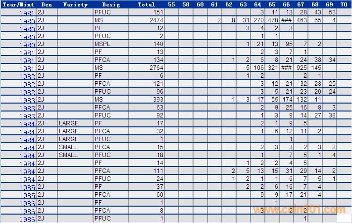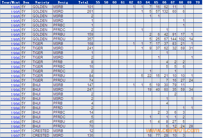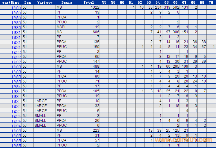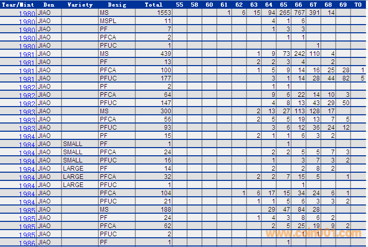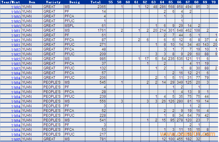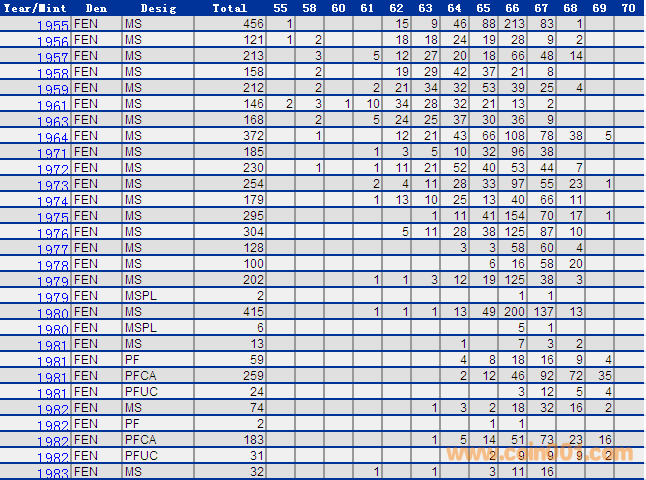 NGC硬幣評級分?jǐn)?shù)分布 ..