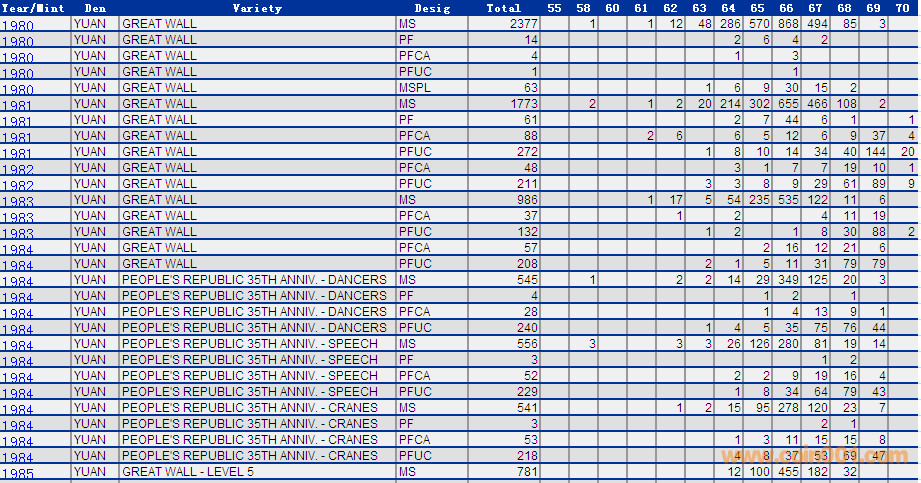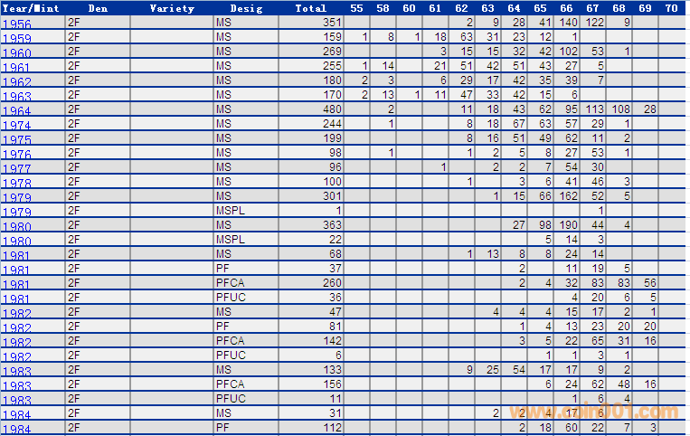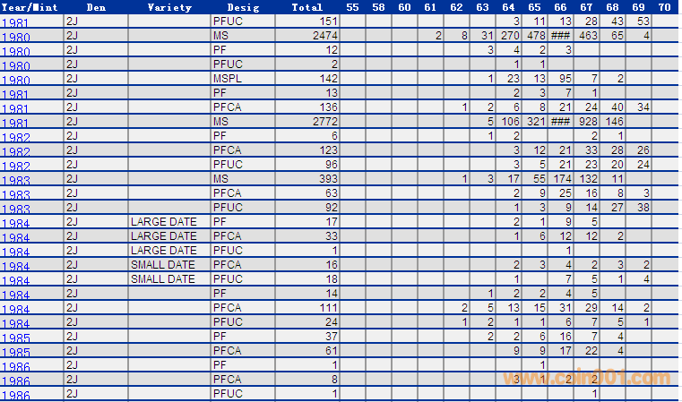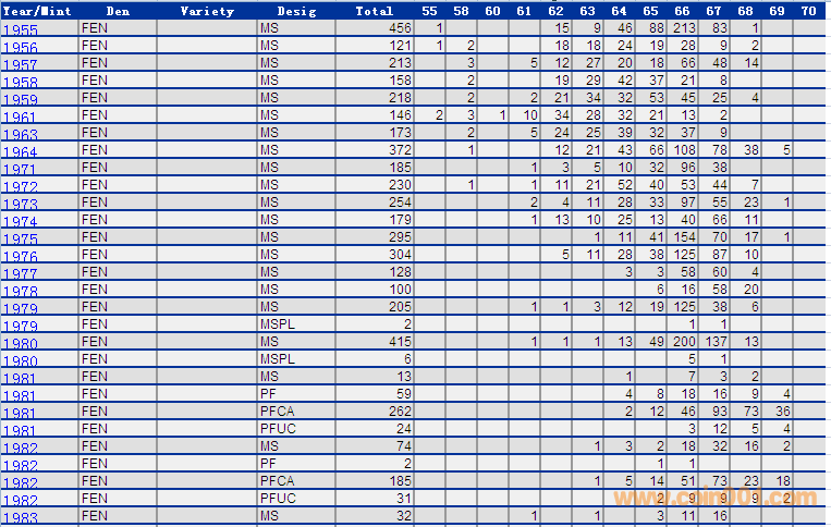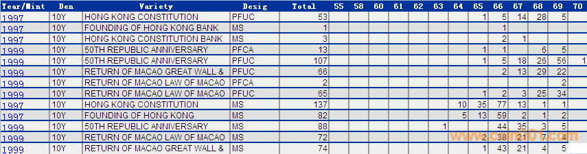 NGC硬幣評(píng)級(jí)分?jǐn)?shù)分布 ..