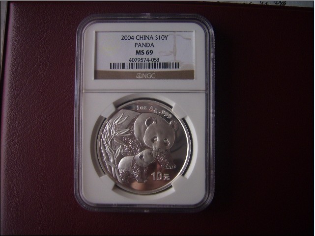 拍品描述:NGC ms69分2004年熊貓銀幣,盒子完好;