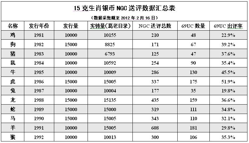 感覺從發(fā)行量、評級情況已經(jīng)目前市場上的裸幣狀況看,15克兔應該和15克雞的評級幣價格相仿。