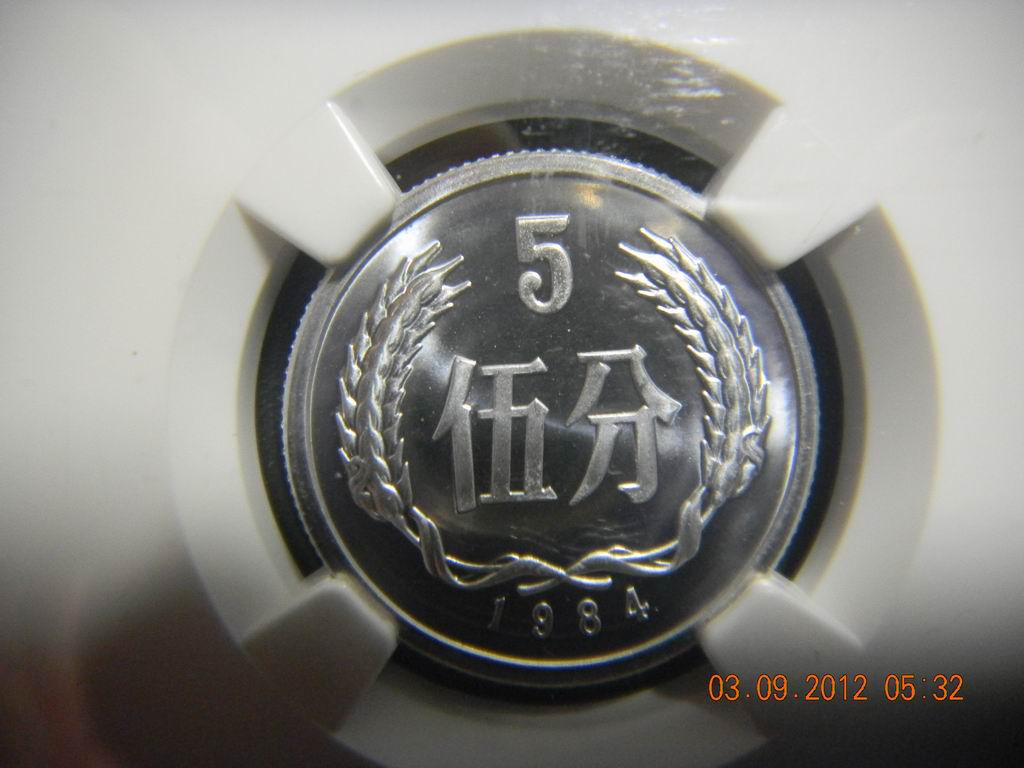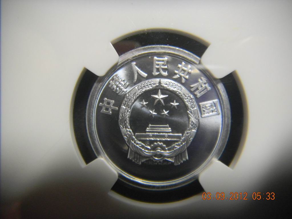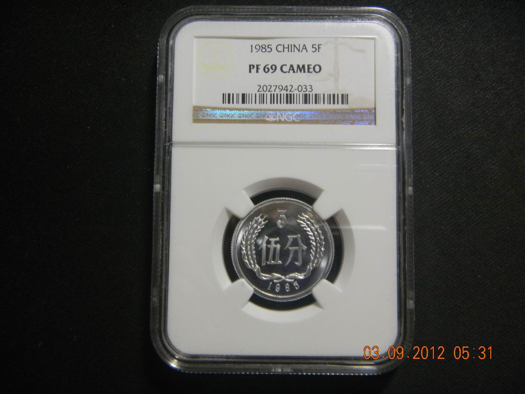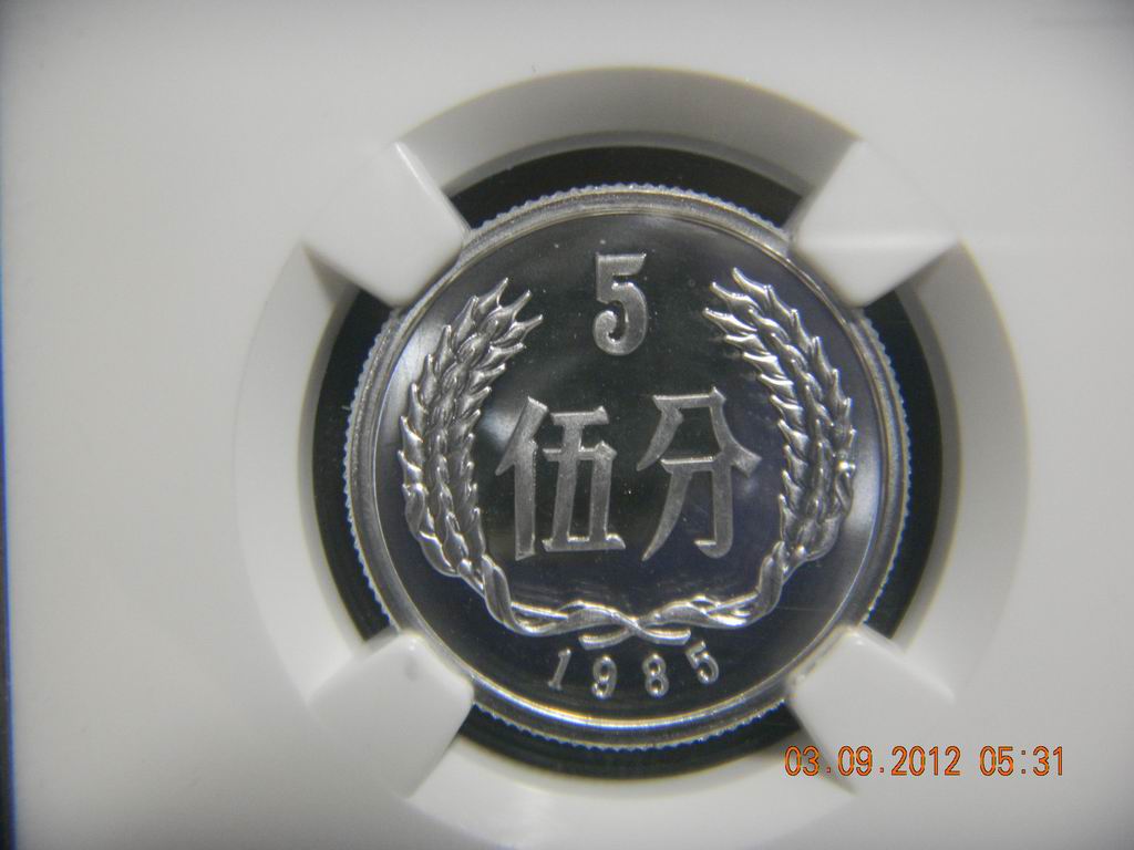 85年5分為沈陽(yáng)版,沈陽(yáng)版的分幣精制程度上要比上海版差很多,相信有些朋友從沈陽(yáng)版拆出的5分幣NGC給評(píng)成了MS吧,這枚5分幣無(wú)論從拋光、噴砂等精制程度都是我所見(jiàn)過(guò)沈陽(yáng)版中最好的(包括84、85甚至86),評(píng)高分不易,喜歡追求頂級(jí)分?jǐn)?shù)的朋友千萬(wàn)不要錯(cuò)過(guò)。