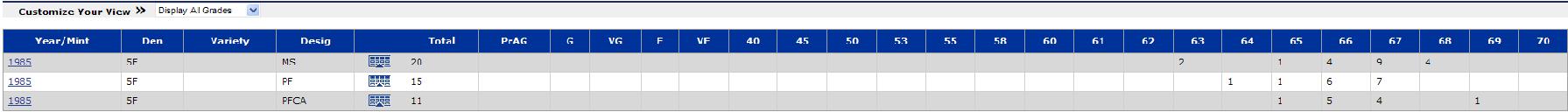 第一枚:85年5分,NGC評(píng)級(jí)PF69CA,通過(guò)NGC官網(wǎng)可查PF69CA只此一枚,連68分都沒(méi)有。價(jià):1.5萬(wàn)。