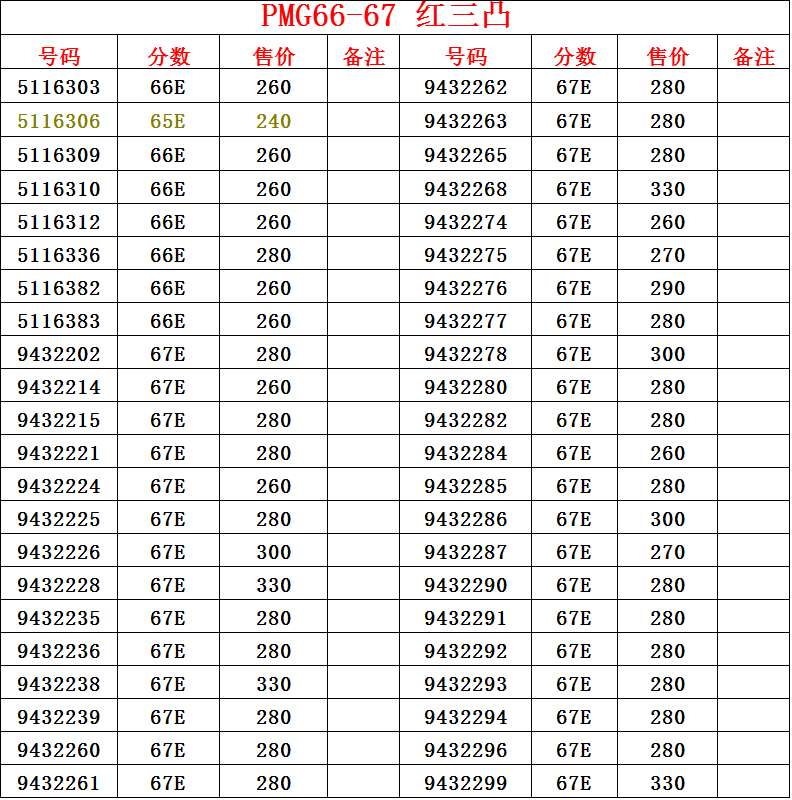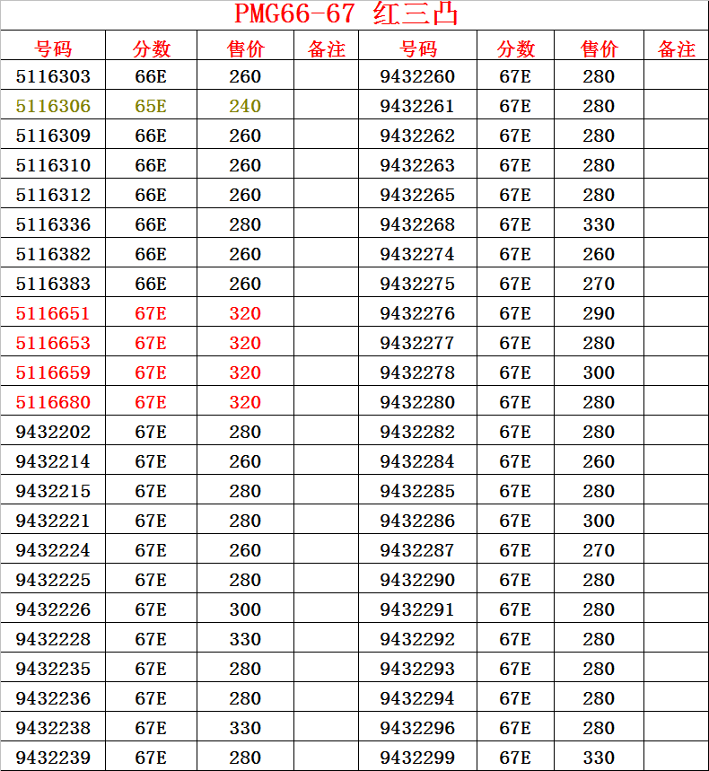 號碼 分數(shù) 售價 號碼 分數(shù)售價