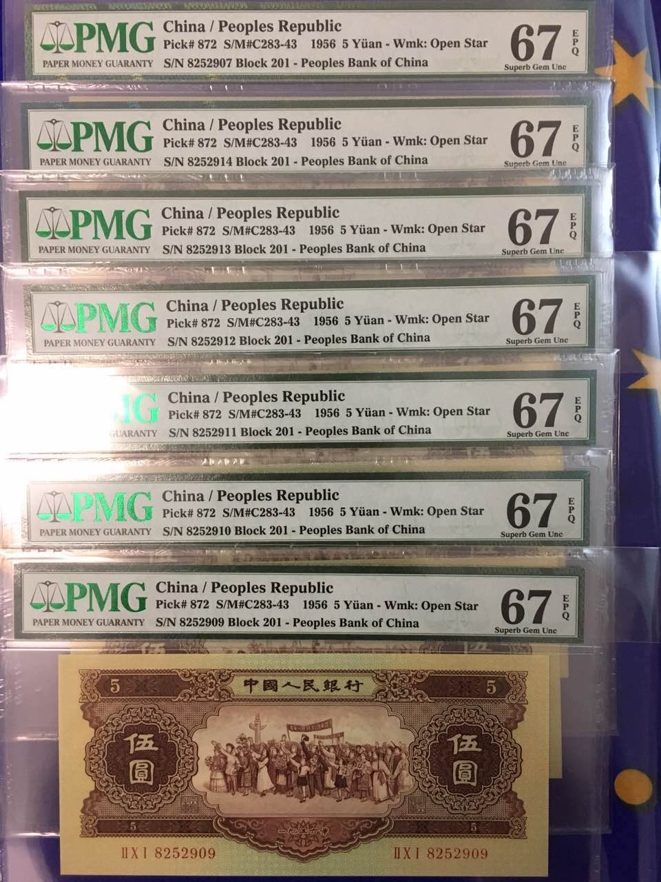 PMG67分二版黃五元7枚 ..