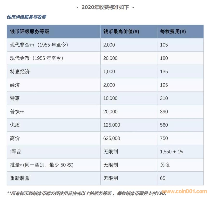 中國-上海)從2020年1月20日起,專業(yè)錢幣評級服務(wù)公司PCGS(www.PCGS.com.cn)的錢幣、紙幣送評及還原服務(wù)與部分附加服務(wù)將施行新的收費標準。
