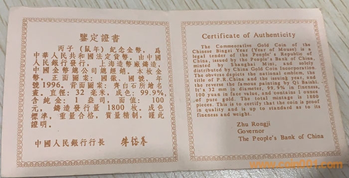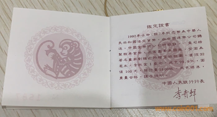 1992年1盎司猴金幣 1996 ..