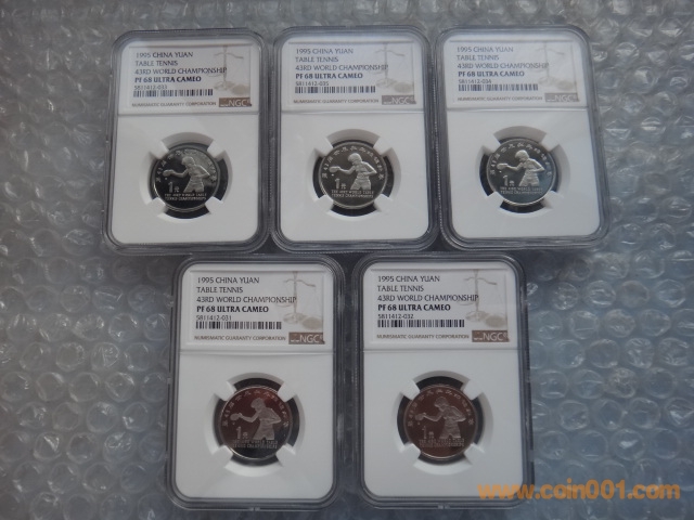 精制世乒賽 PF68UC 未養(yǎng)護(hù) 1100元一枚 有5枚 帶盒證書