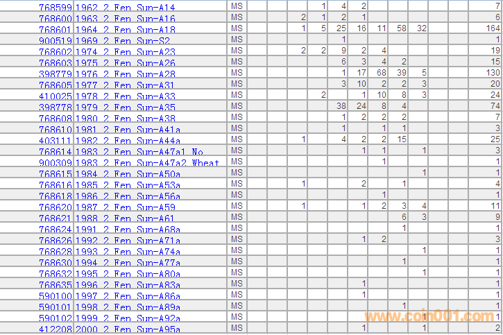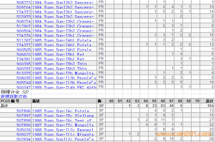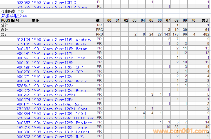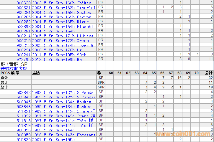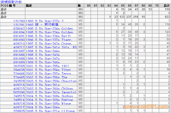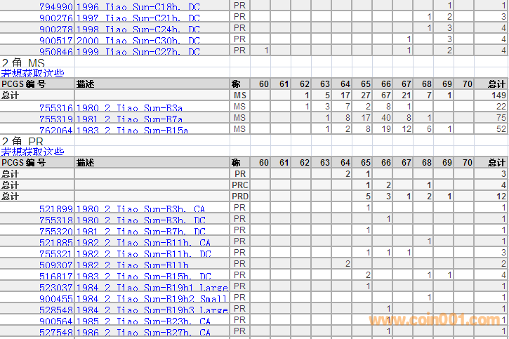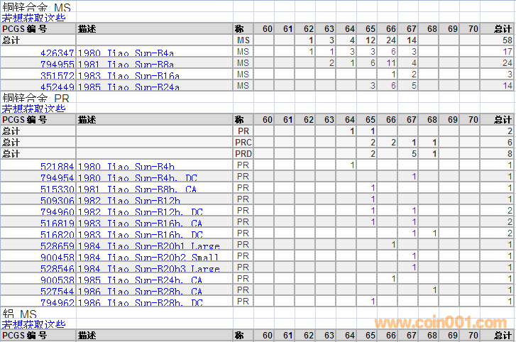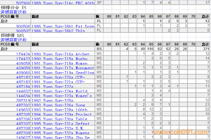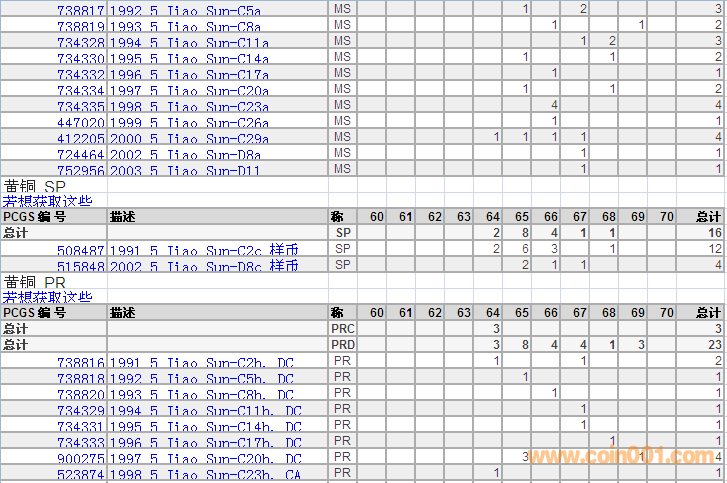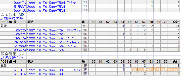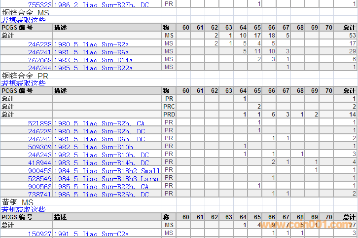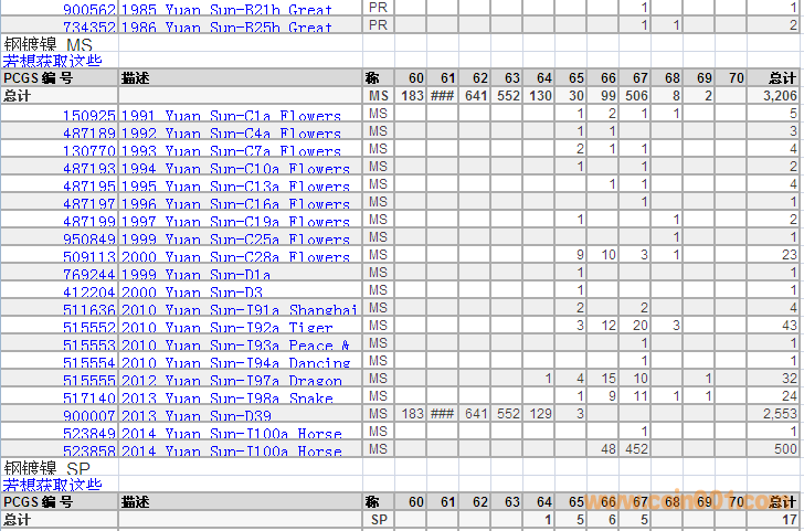 PCGS硬幣評級分?jǐn)?shù)分布 ..