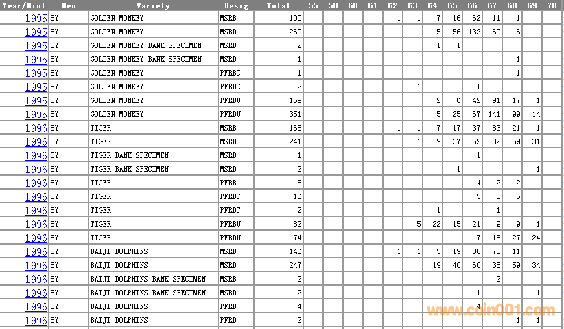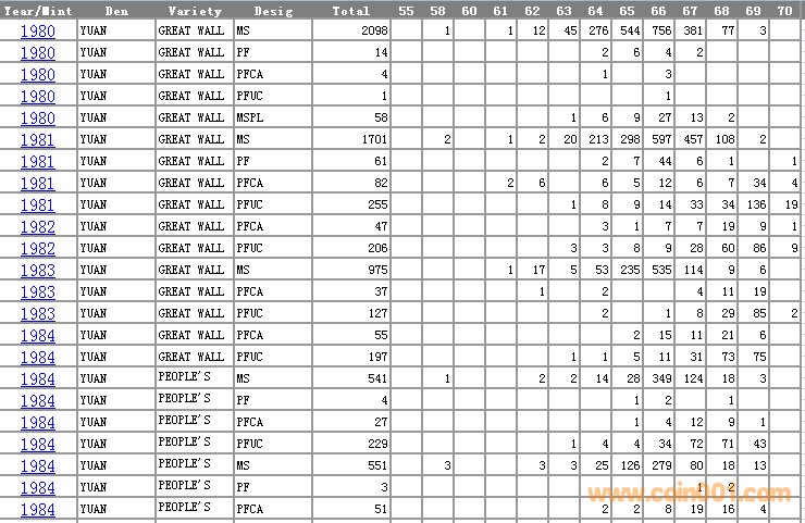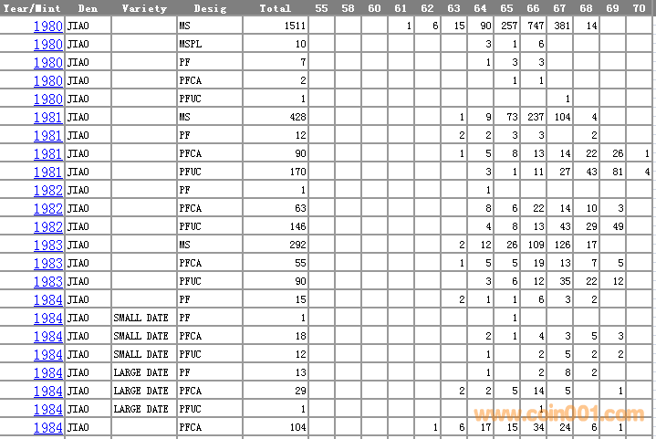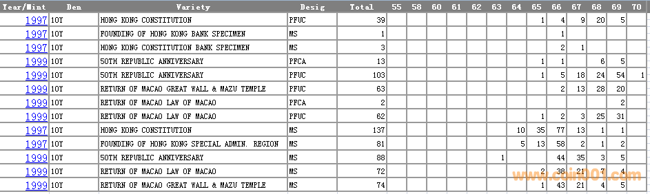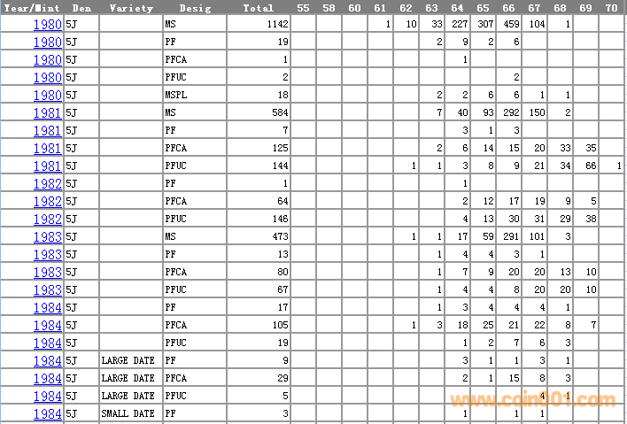 NGC硬幣評(píng)級(jí)分?jǐn)?shù)分布 ..