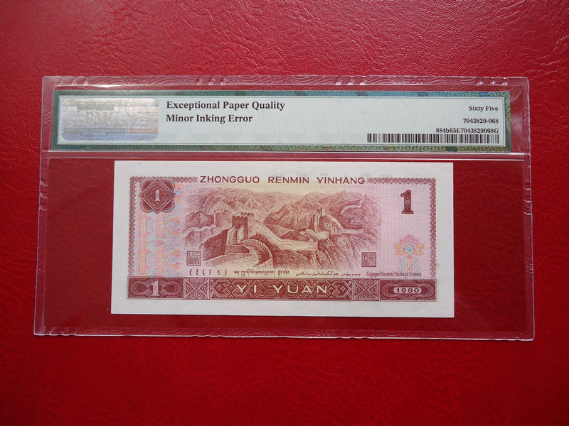 PMG 901 是65分 本身901的號碼幣就非常少 前有801后有961 PMG 盒子背面也有注釋 Minor Inking Error 印刷油墨錯誤 惜售3800元!