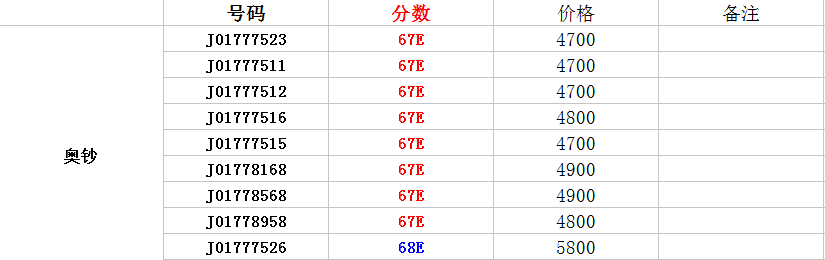 售 PMG 66E 67E 68E 奧鈔 ..