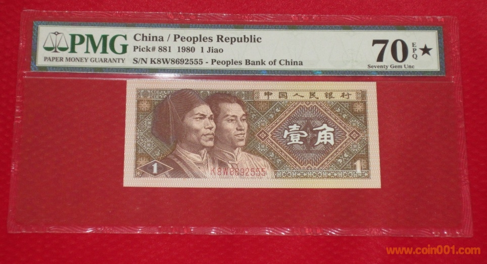 1980年5元,號(hào)碼:22183330  67分;