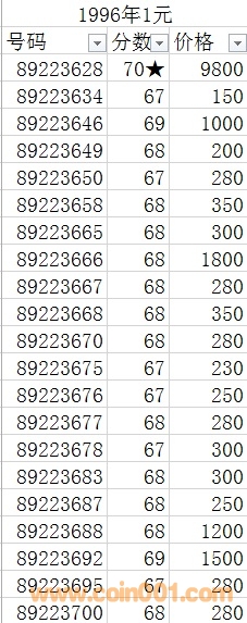 1996年1元 號(hào)碼:89223650  67分;