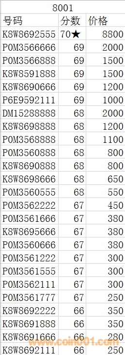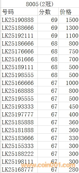8010  號(hào)碼:61135890 67分。