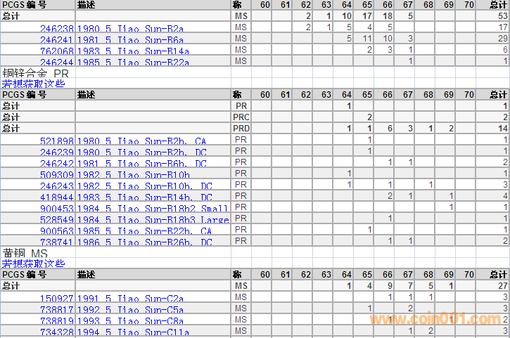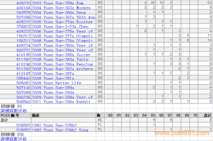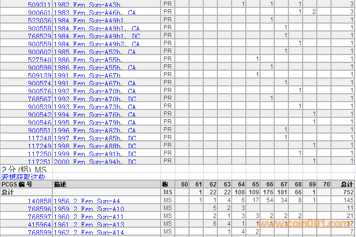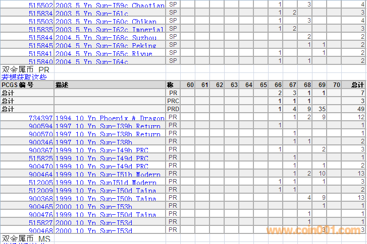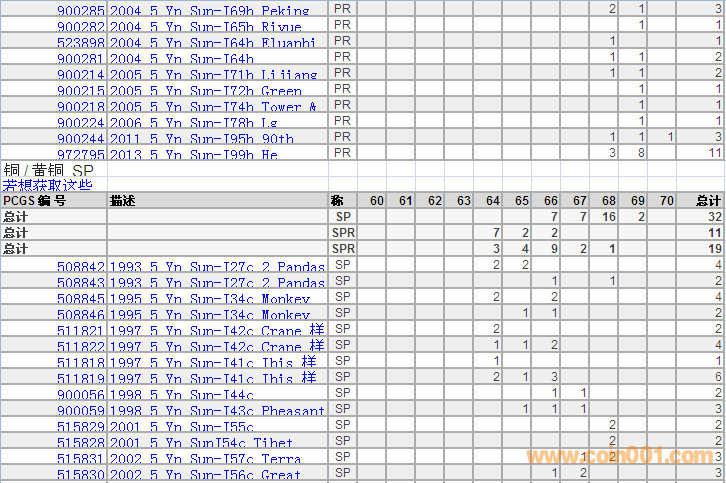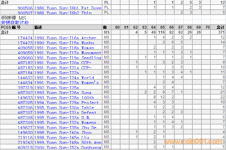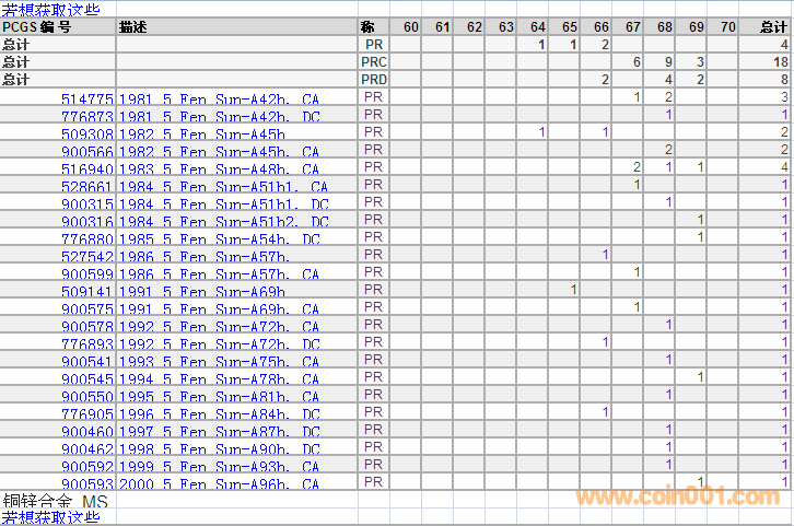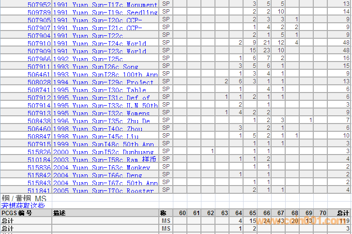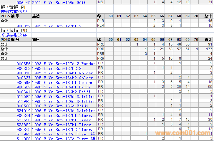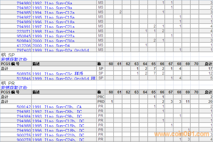 PCGS硬幣評級分?jǐn)?shù)分布 ..