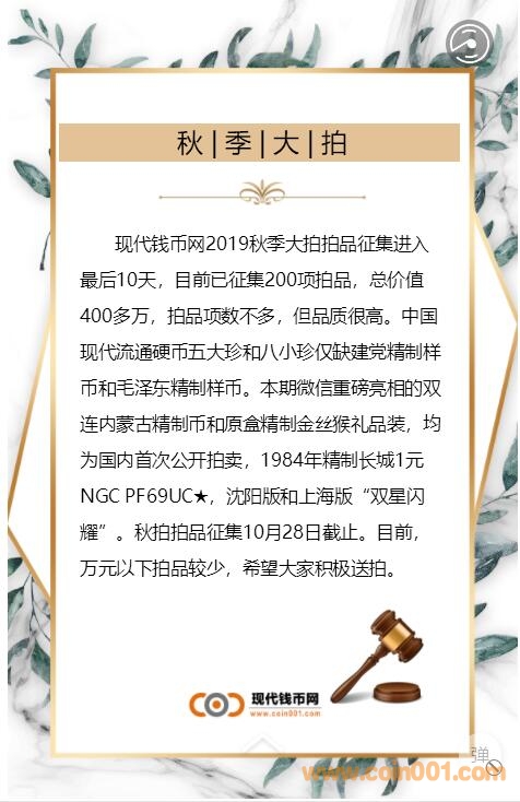 七、 秋季大拍拍品征集10月28日截止,征集進(jìn)入最后兩周,請(qǐng)大家合理安排送拍品種和寄送時(shí)間。