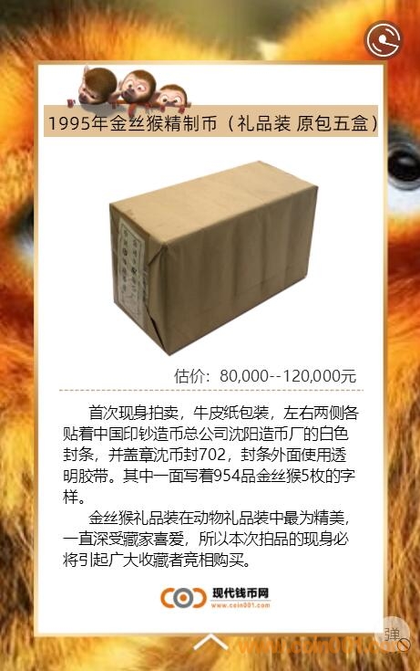 四、 原盒精制金絲猴禮品裝(5套)也將亮相秋拍。
