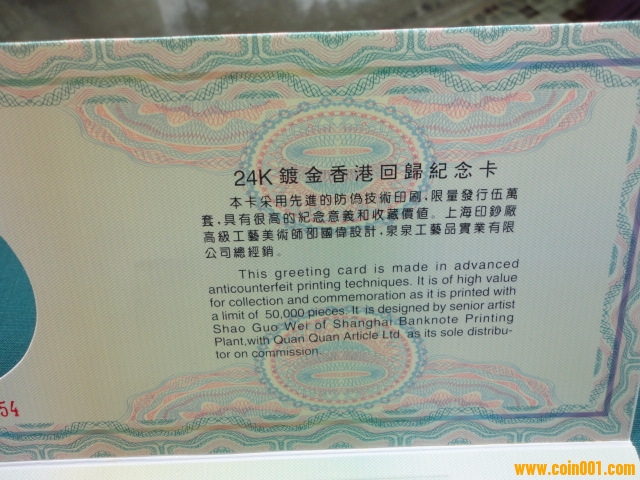 24k鍍金香港回歸紀(jì)念 ..