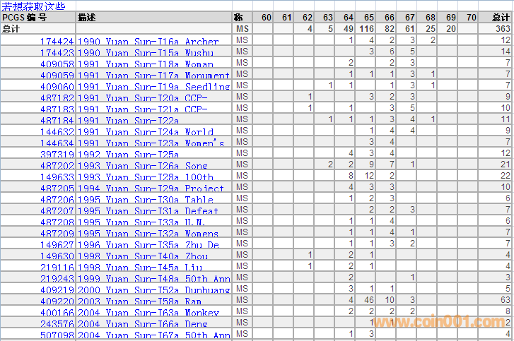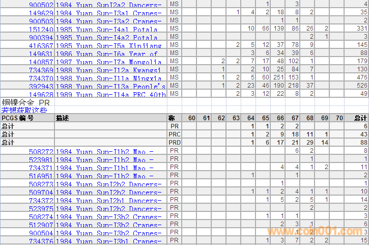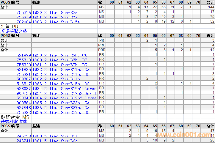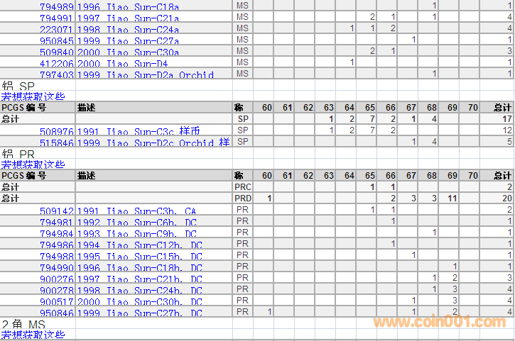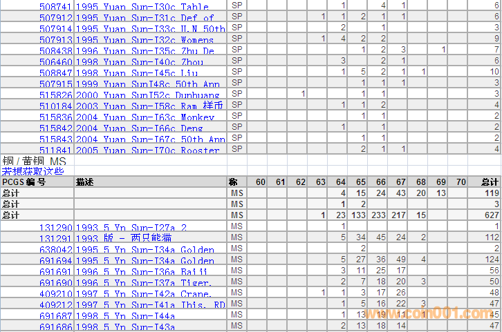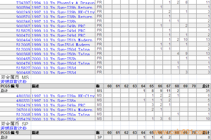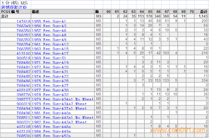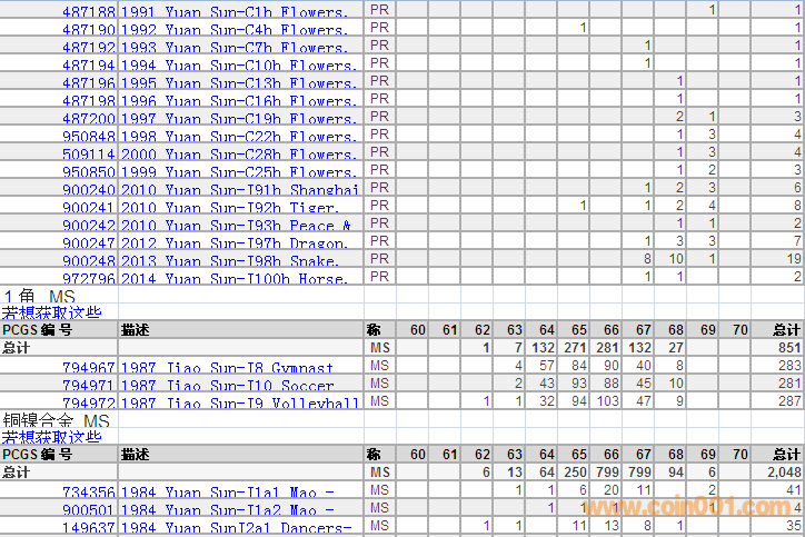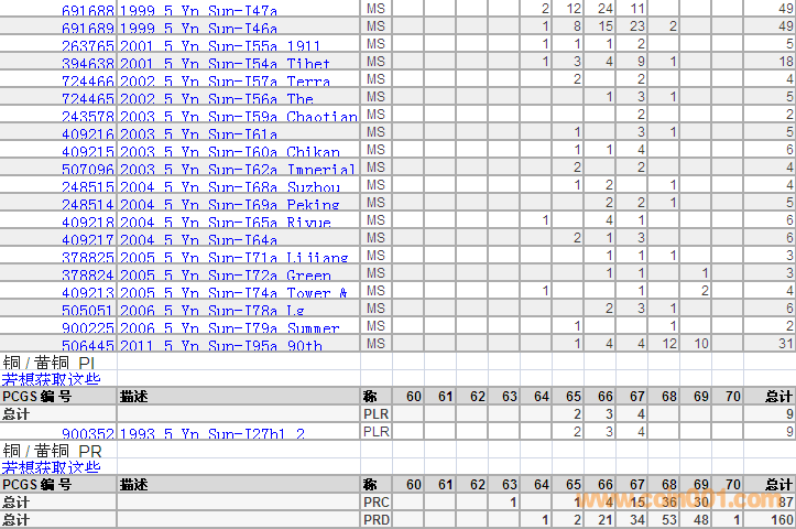 PCGS硬幣評級分?jǐn)?shù)分布 ..