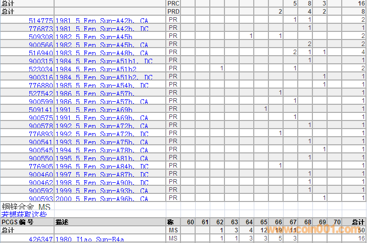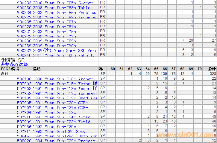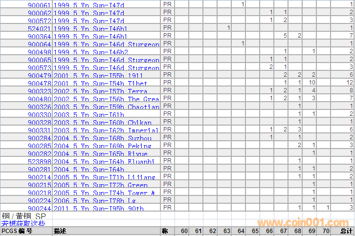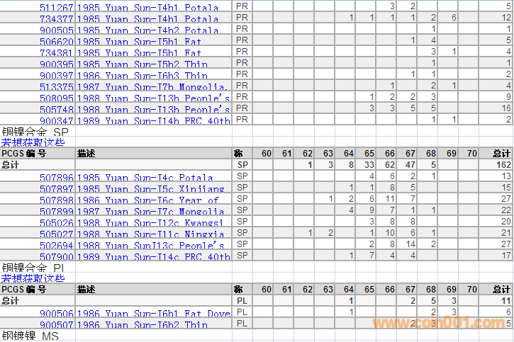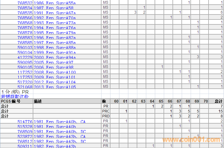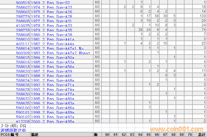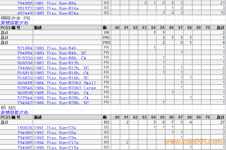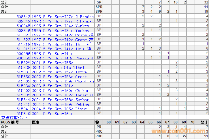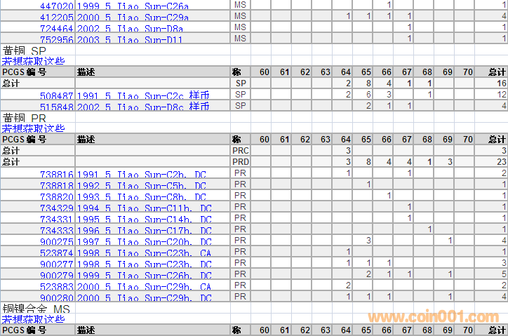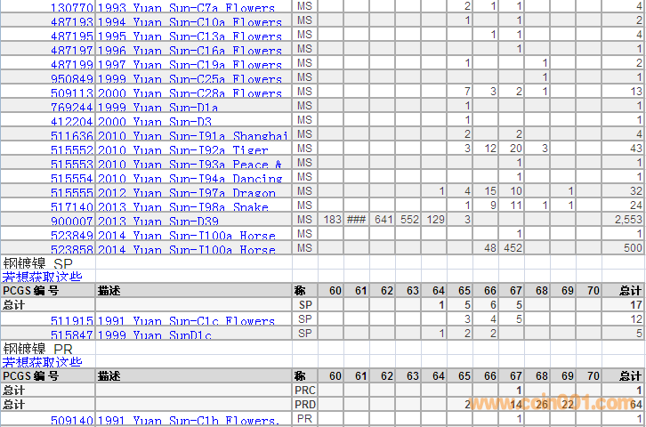 PCGS硬幣評級分?jǐn)?shù)分布 ..