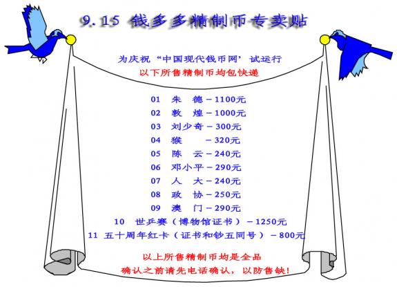 引用 引用第5樓rice119于2010-09-15 14:10發(fā)表的 :錢多多賣的大多是熱門精制幣,鎳幣我相信 政協(xié),人大,少奇,朱德,世乒賽還會創(chuàng)新高的