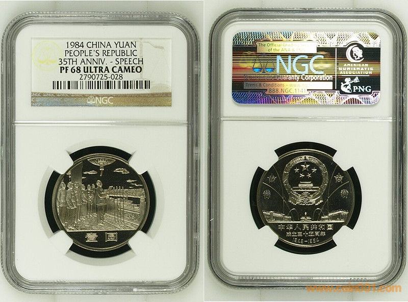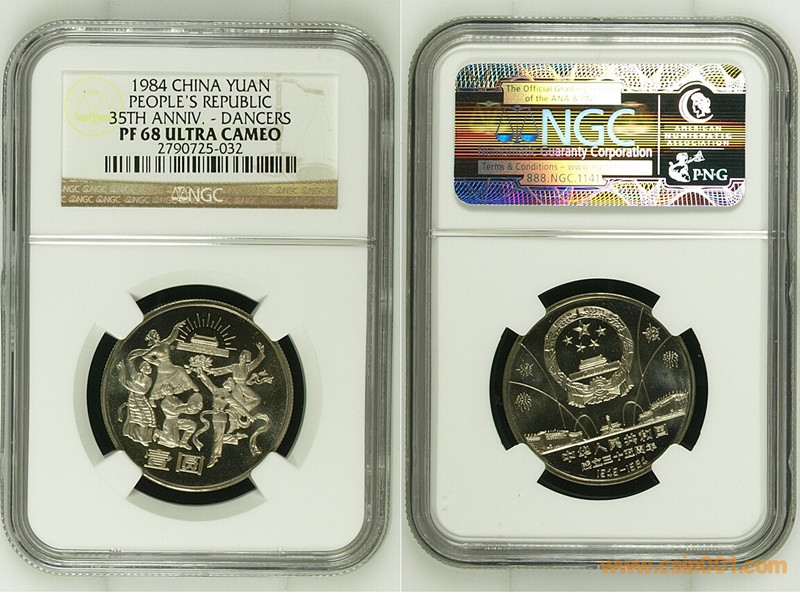 NGC權(quán)威專業(yè)公司評(píng)級(jí) 84年建國(guó)35周年新中國(guó)第一套流通紀(jì)念幣 68UC高分很不容易了 玩流通紀(jì)念幣評(píng)級(jí)朋友 不可缺入門(mén)首選品種 無(wú)養(yǎng)護(hù) 2300包順豐