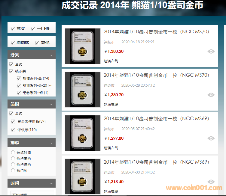評級普通(精制)紀念幣交易
