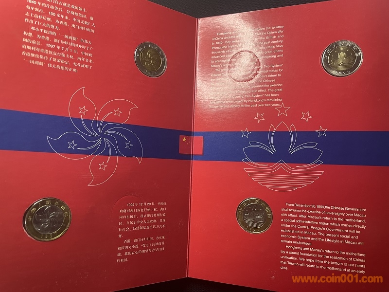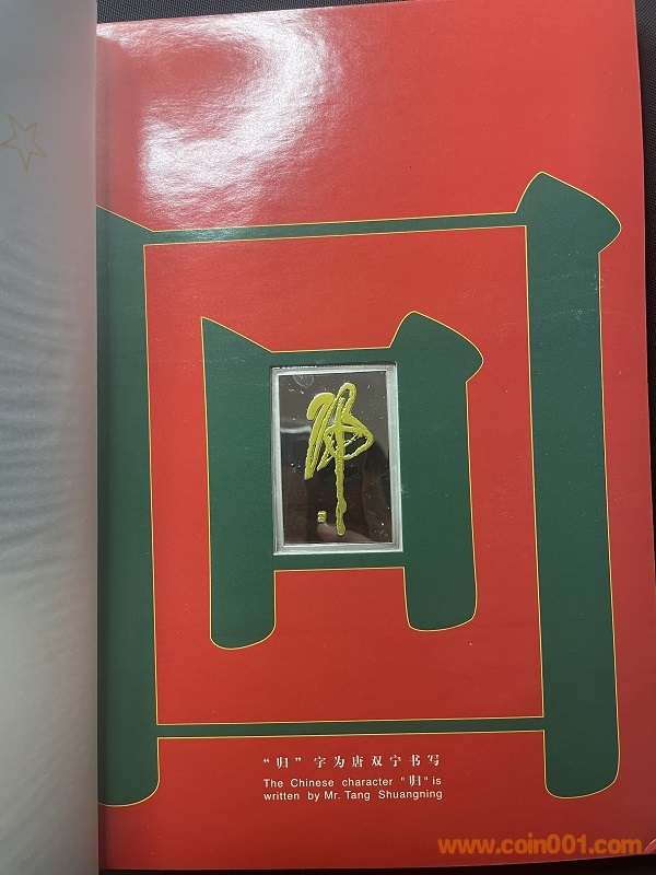 香港澳門(mén)回歸紀(jì)念冊(cè),正宗康銀閣出品本冊(cè)為正宗北京康銀閣錢(qián)幣裝禎公司發(fā)行,發(fā)行量較少,全國(guó)僅5萬(wàn)冊(cè),有收藏證書(shū),記錄了香港澳門(mén)的回歸歷程,內(nèi)含全新香港、澳門(mén)回歸紀(jì)念幣各一套,一共四枚,面值總計(jì)40元,鄧字紀(jì)念銀章一枚,原廠封裝杜絕了紀(jì)念幣流轉(zhuǎn)過(guò)程中氧化現(xiàn)象,也便于普通愛(ài)好者的儲(chǔ)存和觀賞。他不同于裸幣,有著十分珍貴的收藏價(jià)值!