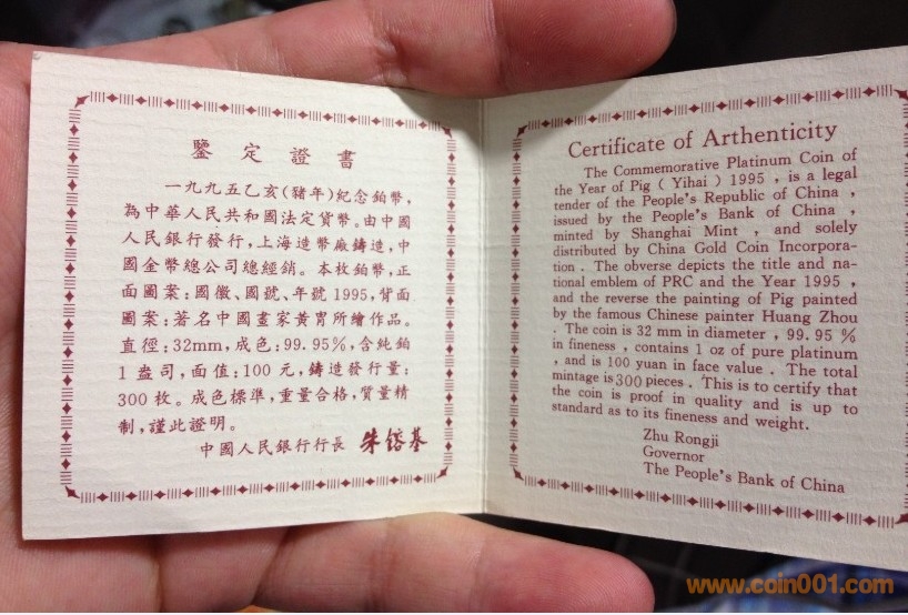 1995年鉑金豬(原盒原證) 售價(jià)72000