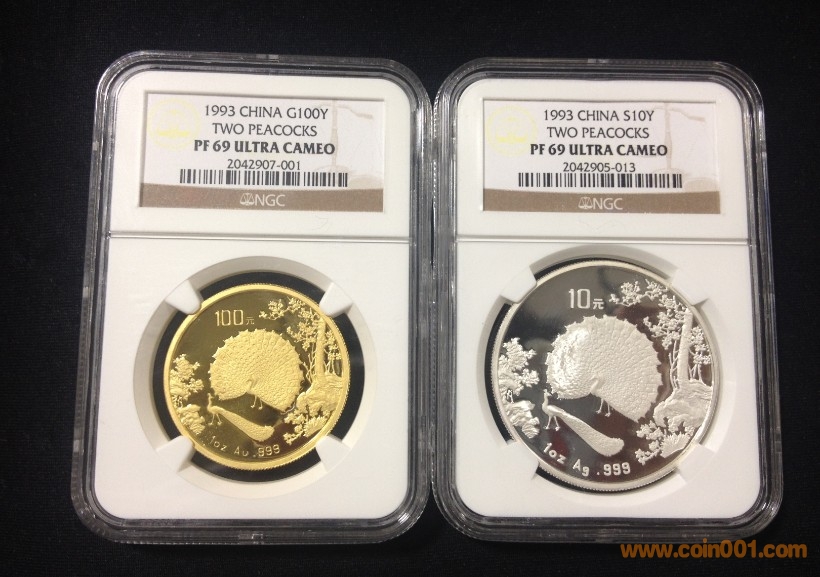 1993年孔雀銀幣加金幣NGCPF69UC售價(jià)75000一對(duì)