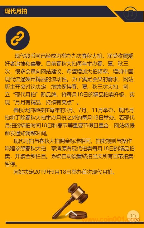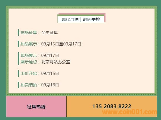 現(xiàn)代月拍是網(wǎng)站新創(chuàng)立的拍賣品牌,傭金標(biāo)準(zhǔn)與春秋大拍相同,拍賣規(guī)則與操作流程參照春秋大拍,保證金標(biāo)準(zhǔn)略有不同,最低保證金為500元,和日常拍賣一樣,拍品征集不追求數(shù)量,更注重品質(zhì),目前已征集30多項(xiàng)拍品,價(jià)值約70多萬,單項(xiàng)拍品的平均價(jià)值超過2萬,除了上述和大家見面的部分拍品,已征集的其他拍品,提前向大家“劇透”一下,方便大家“優(yōu)化”送拍品種。機(jī)制幣目前還沒有征集到,金銀幣征集到3項(xiàng)普通品種,長城幣套裝有1本“紅皮本”和一套84精制沈陽版,評級的暫時(shí)還沒有。普制紀(jì)念幣征集到1盒“一羊”,早期精制幣有一套69分的植樹節(jié)精制幣,后期精制幣有部分品種的禮品裝。紙幣和紀(jì)念幣樣幣等暫時(shí)沒征集到。歡迎大家支持狀態(tài)優(yōu)秀的拍品,剛剛立秋,秋天的現(xiàn)代幣行情如何?918現(xiàn)代月拍拭目以待!