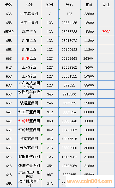評(píng)級(jí)普通(精制)紀(jì)念幣交易