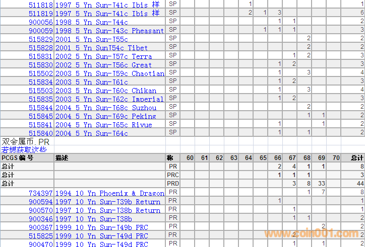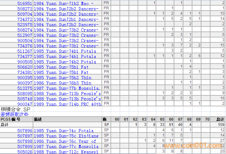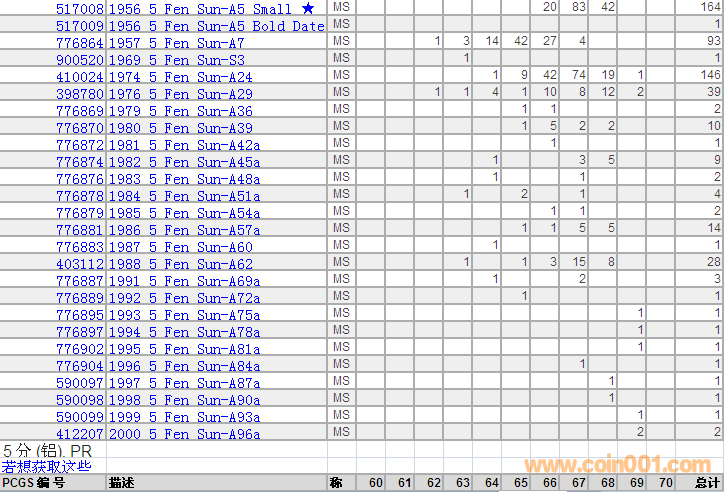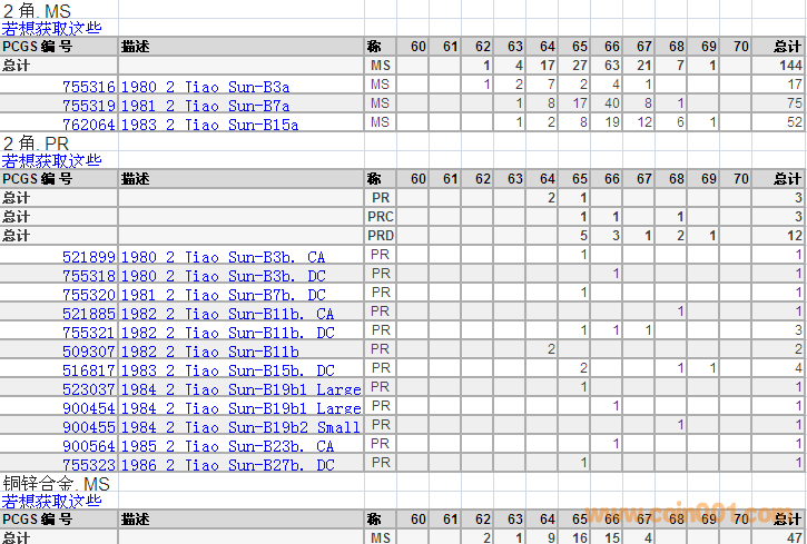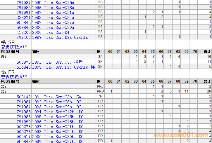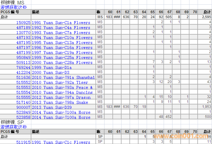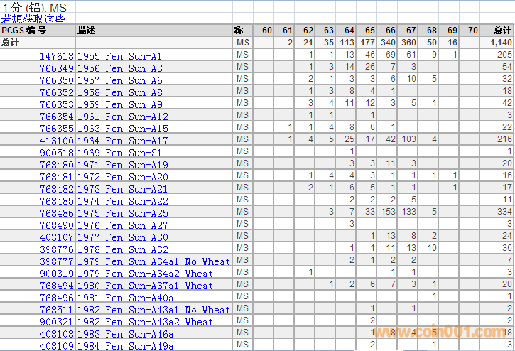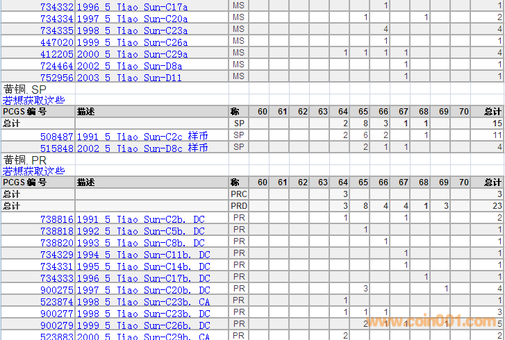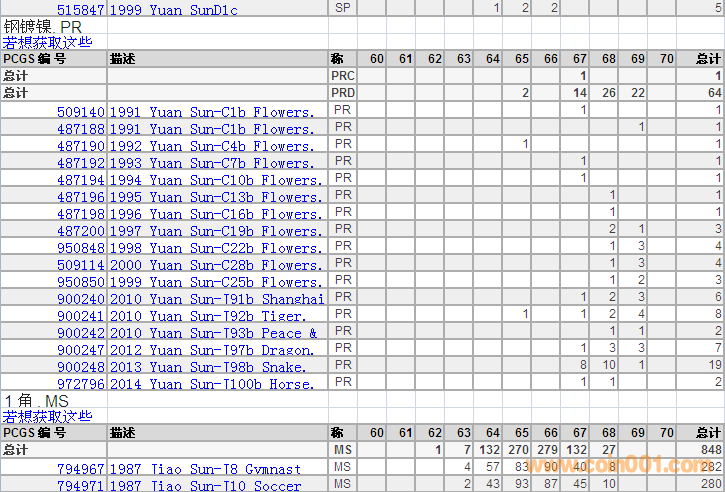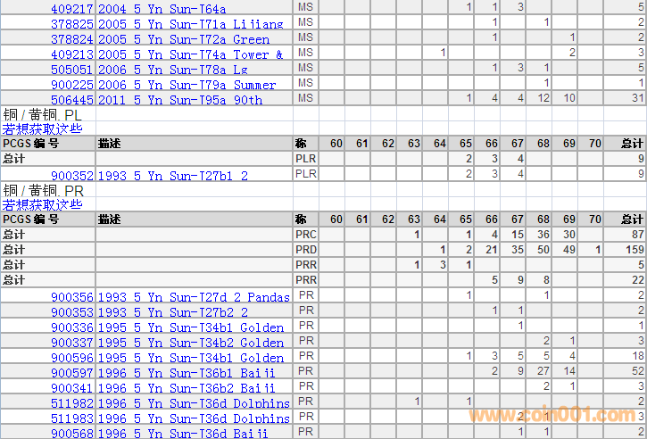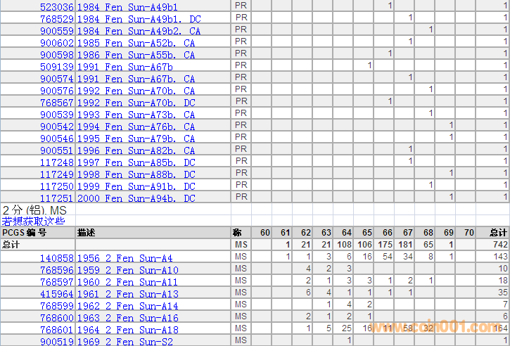 PCGS硬幣評級分數(shù)分布 ..