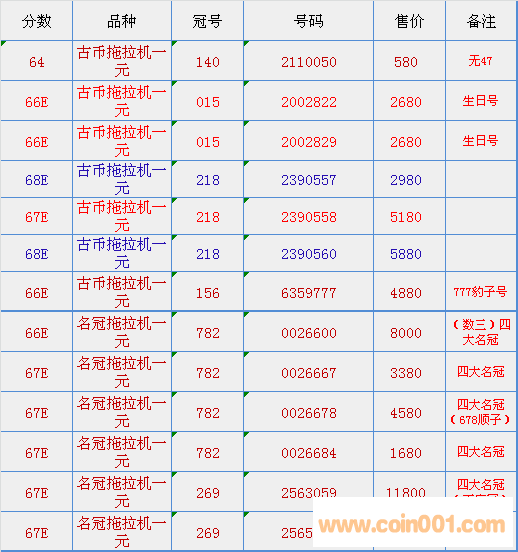 評級普通(精制)紀念幣交易