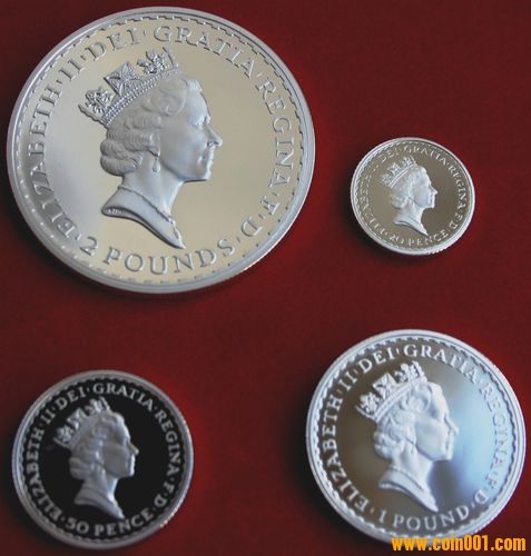 £2 Britannia - weighs 32.45 grams; contains 1 troy ounce of pure silver; diameter 40 mm.