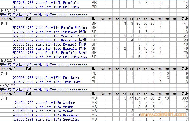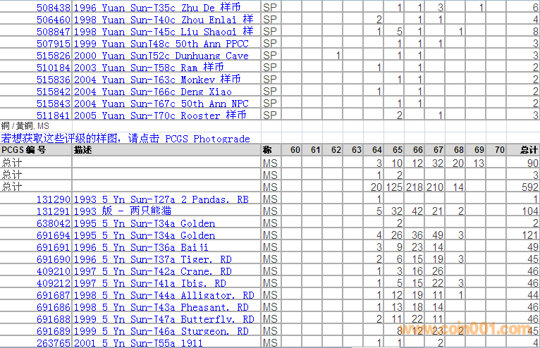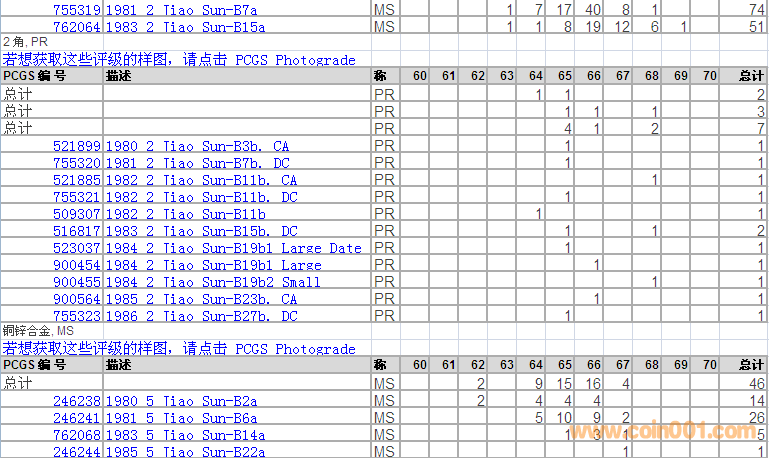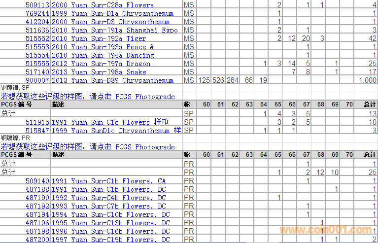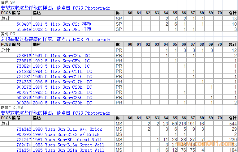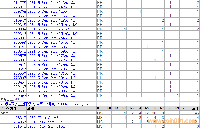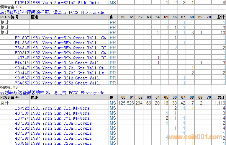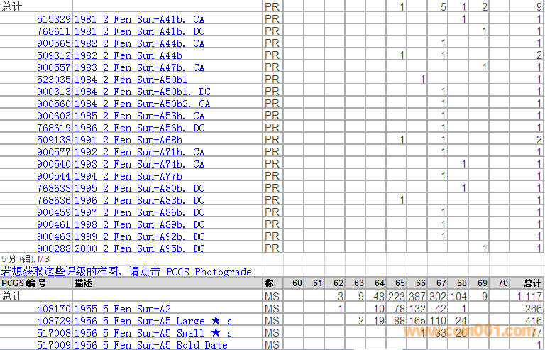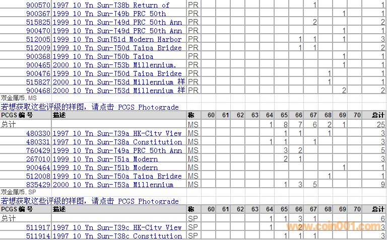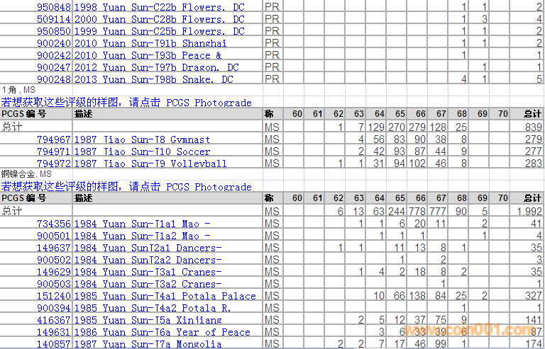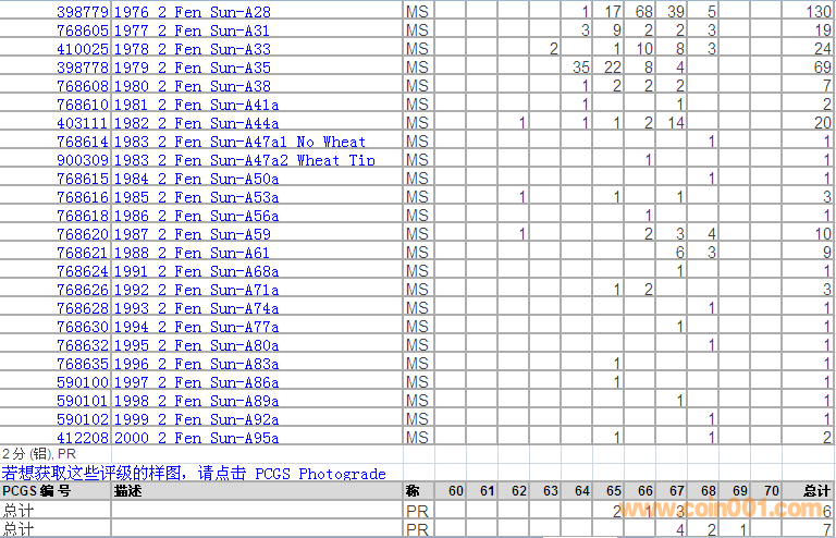 PCGS硬幣評(píng)級(jí)分?jǐn)?shù)分布 ..