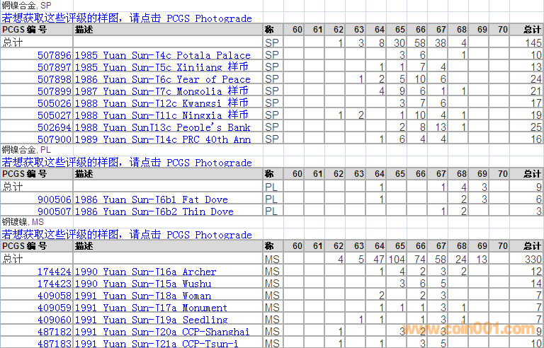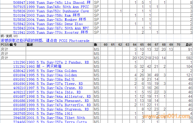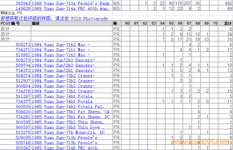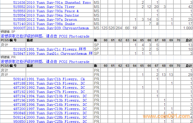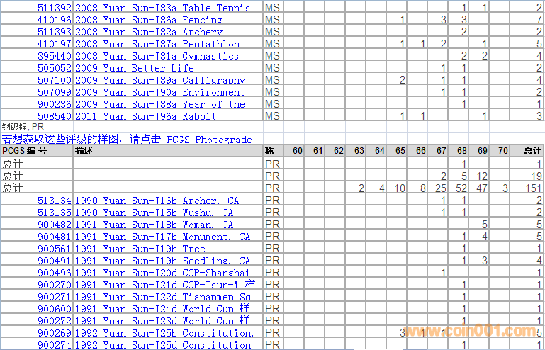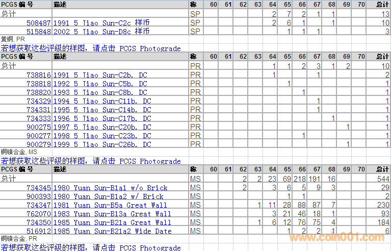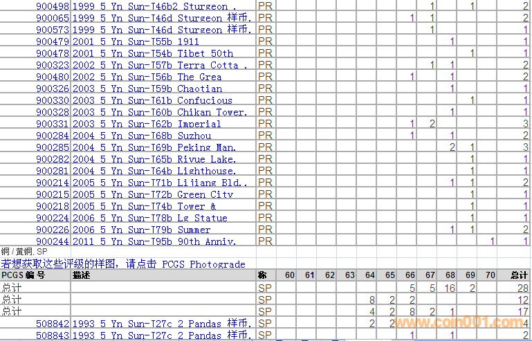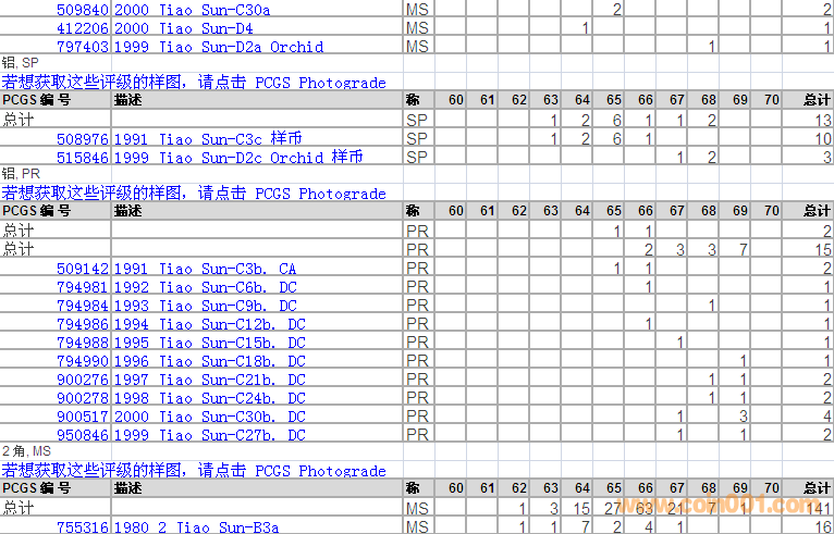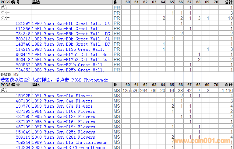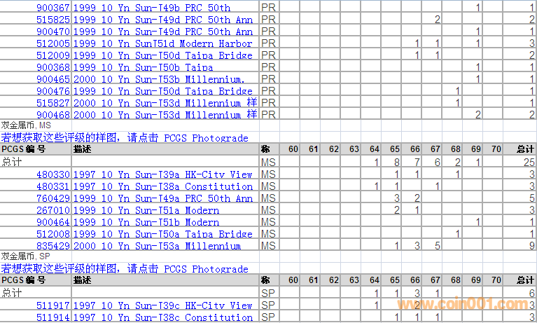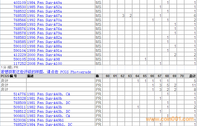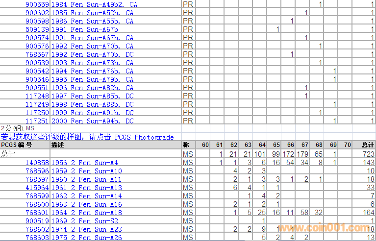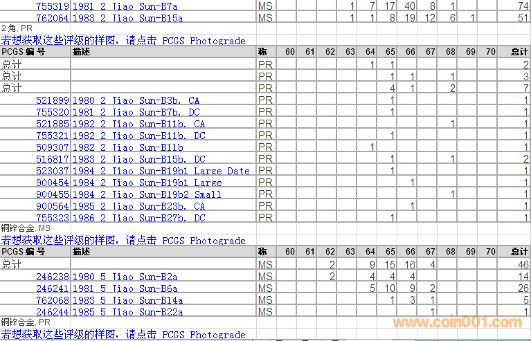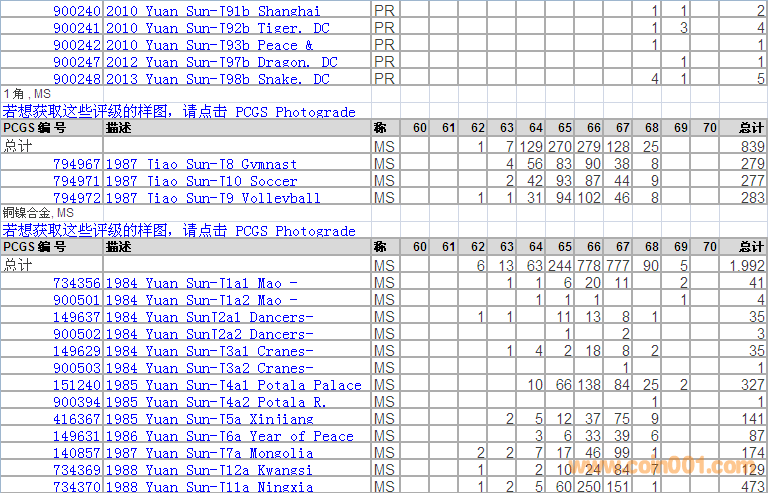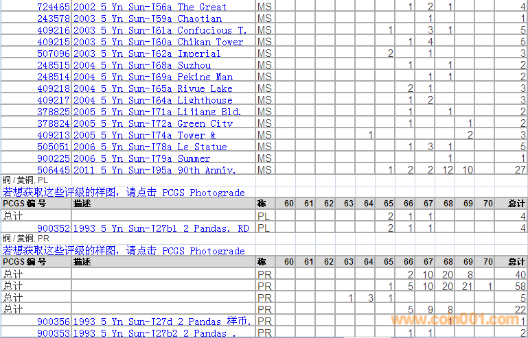 PCGS硬幣評級分?jǐn)?shù)分布 ..