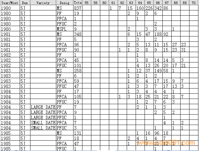 NGC硬幣評級分?jǐn)?shù)分布 ..