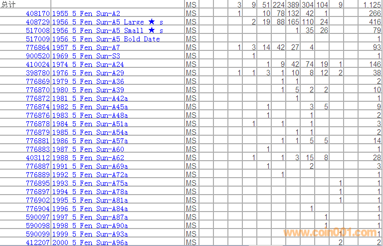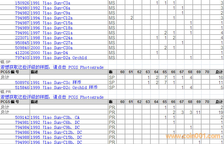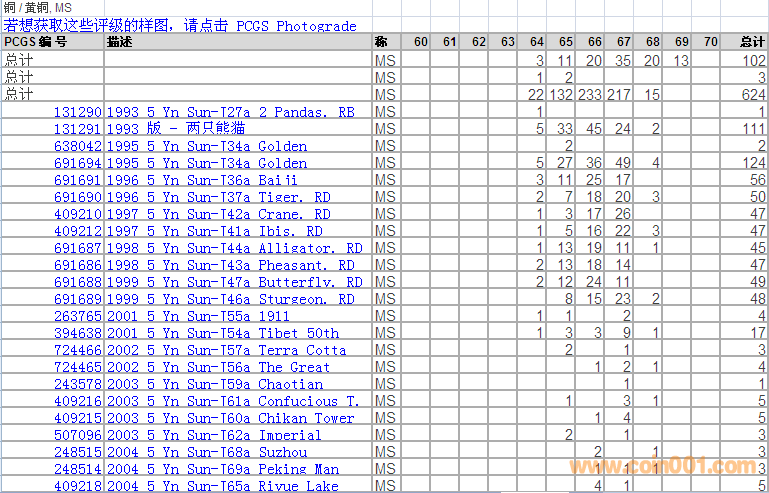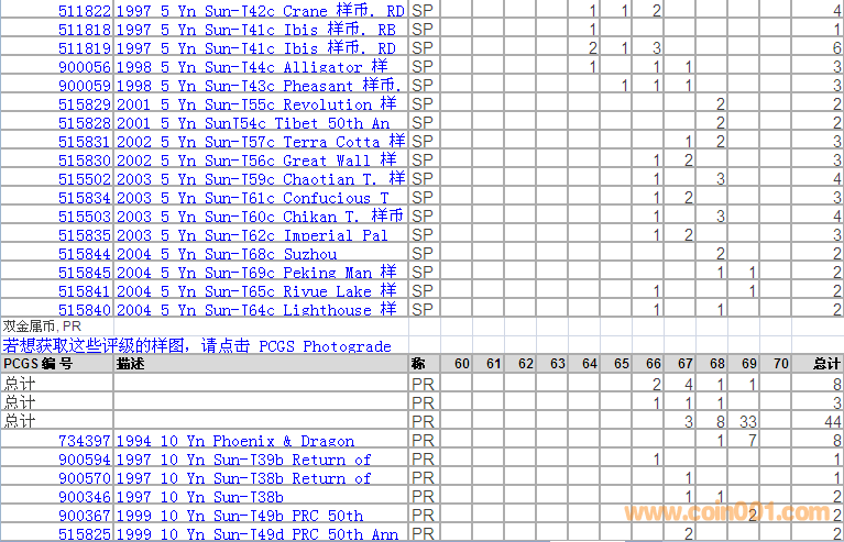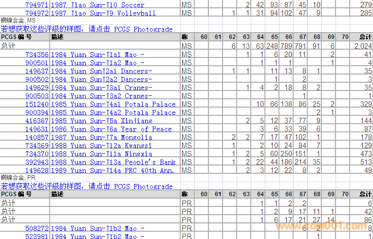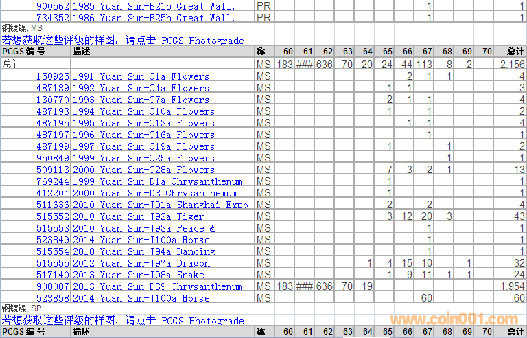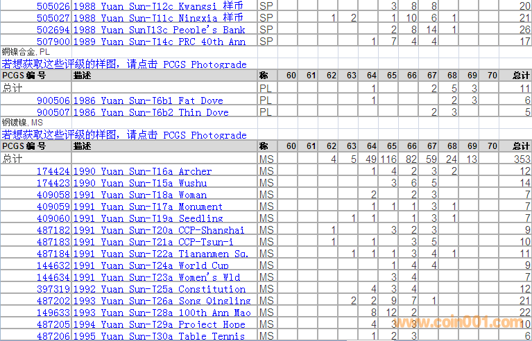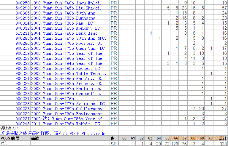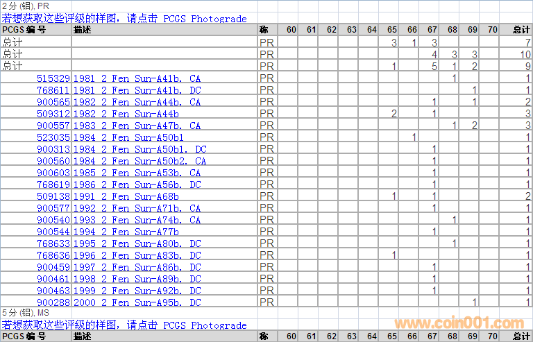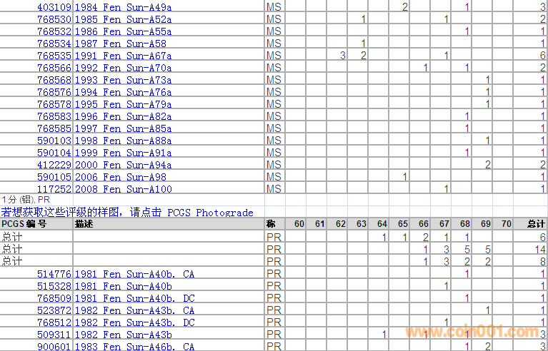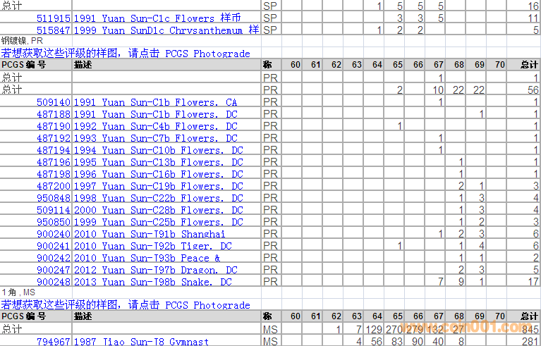 PCGS硬幣評級分數(shù)分布 ..
