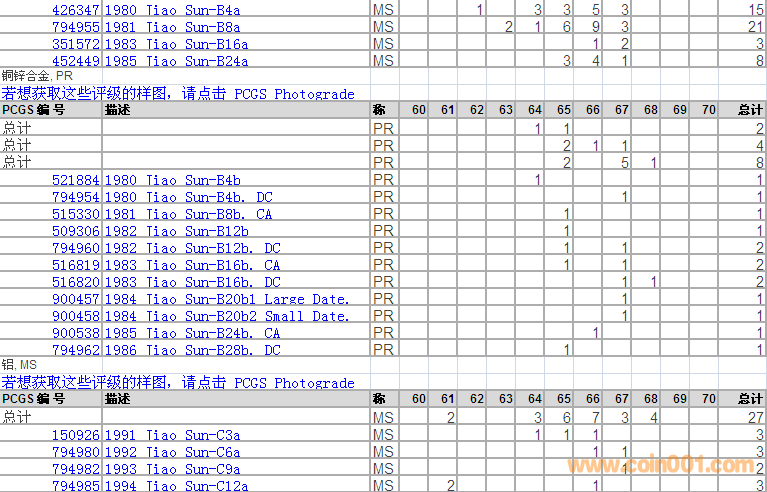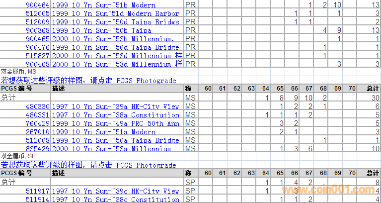 PCGS硬幣評級分?jǐn)?shù)分布 ..