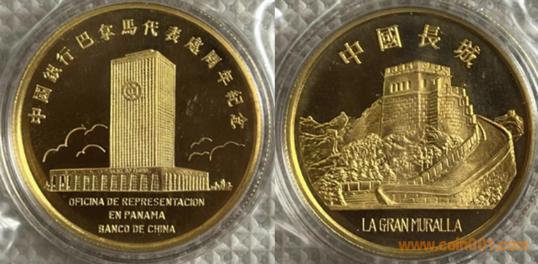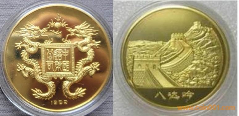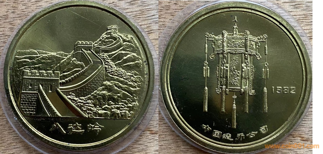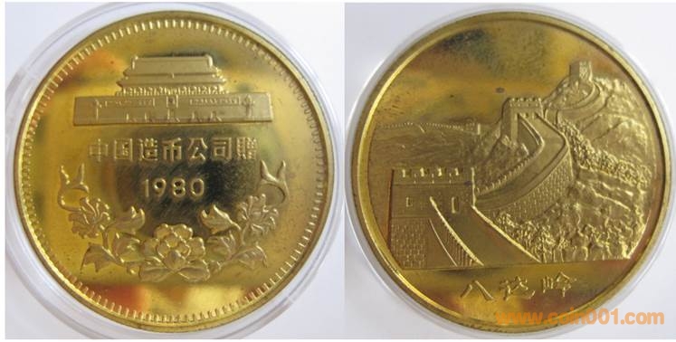 1984年制造,黃銅精制40mm沈幣發(fā)行。正面為長城,反面為主題文字。