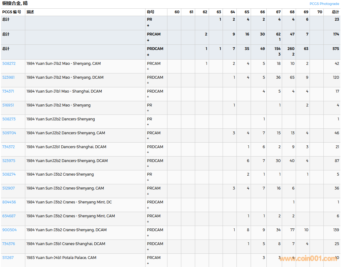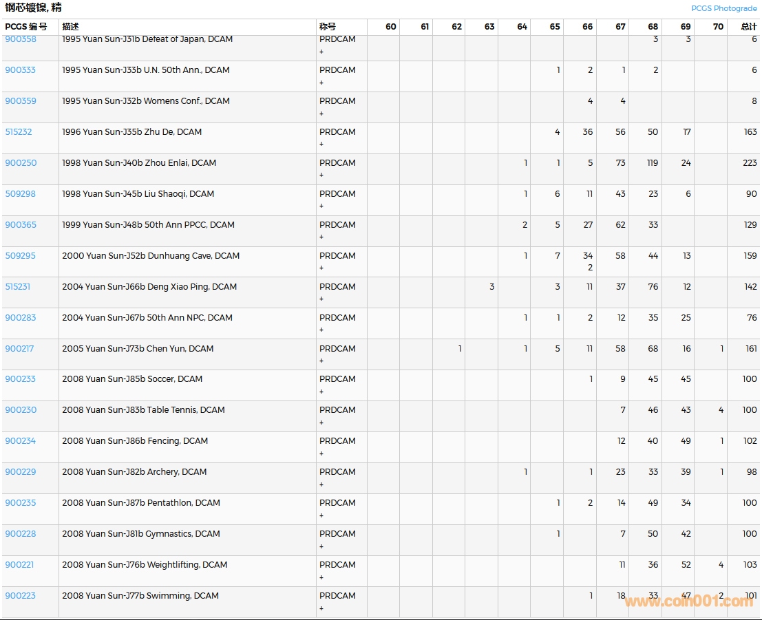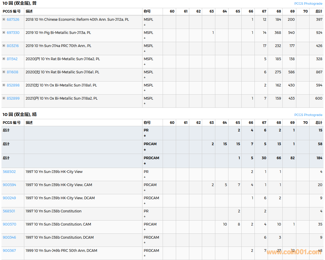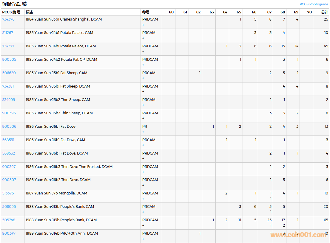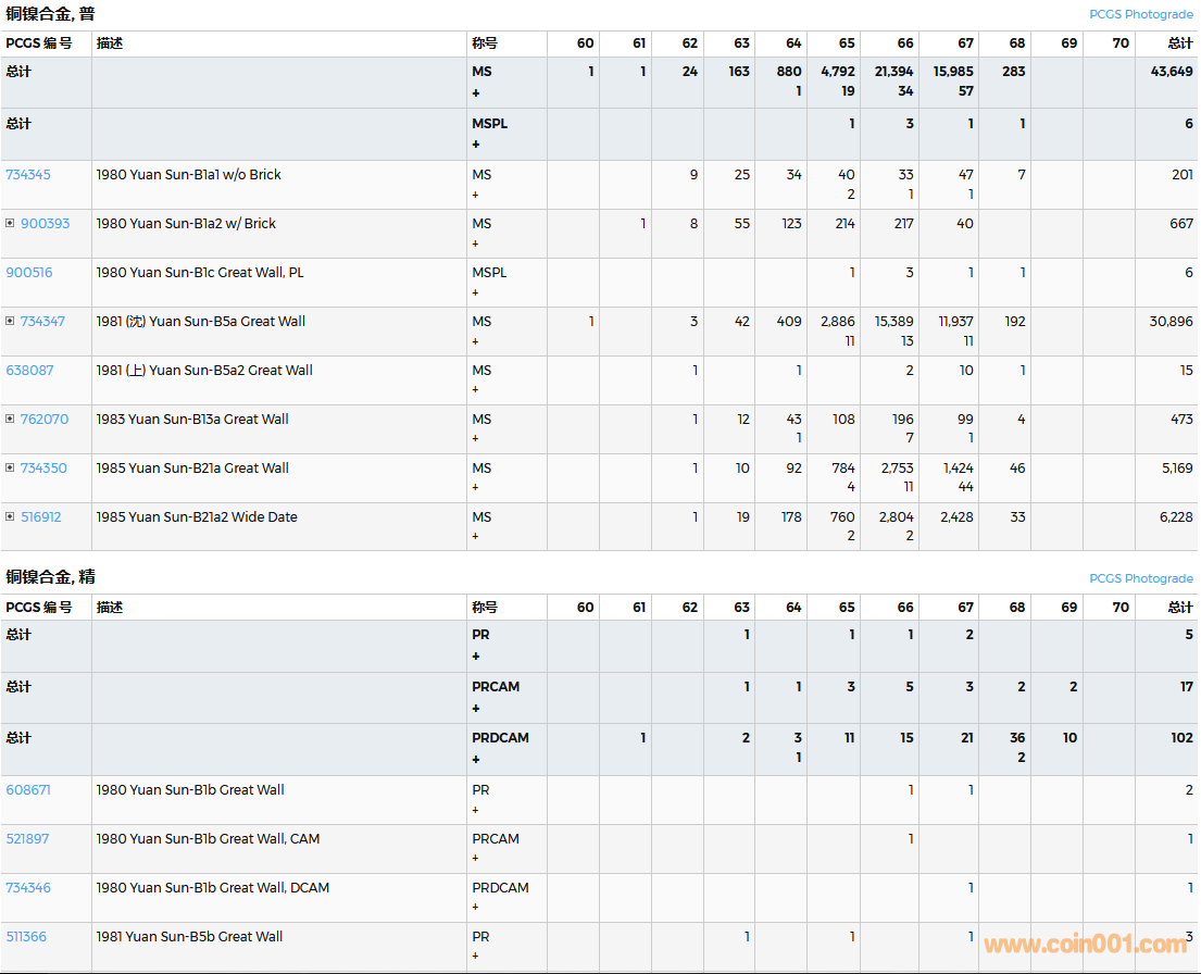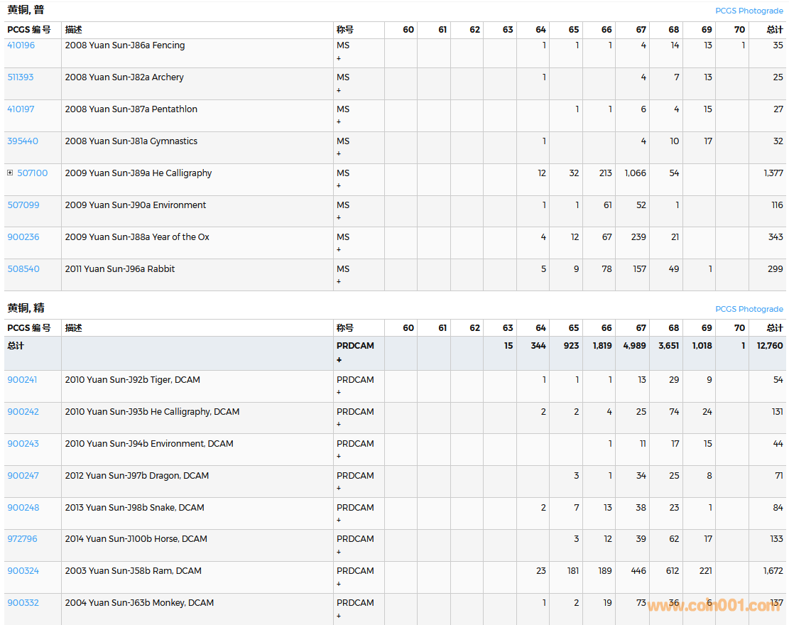 PCGS硬幣評(píng)級(jí)數(shù)量報(bào)告( ..