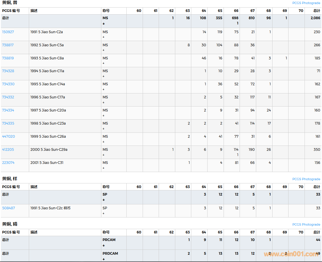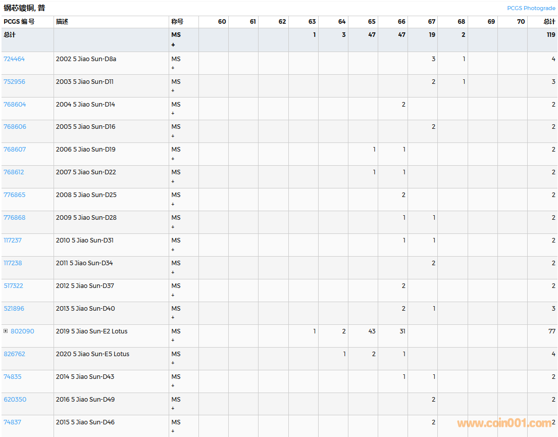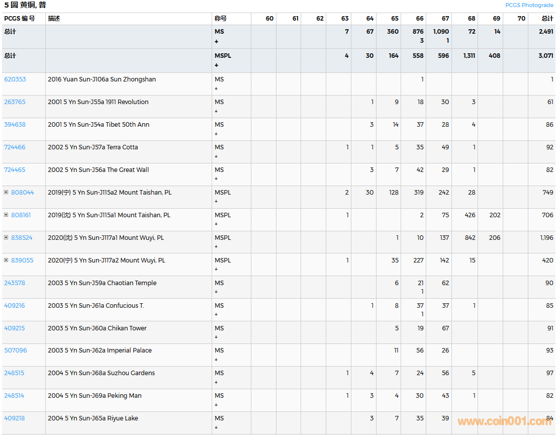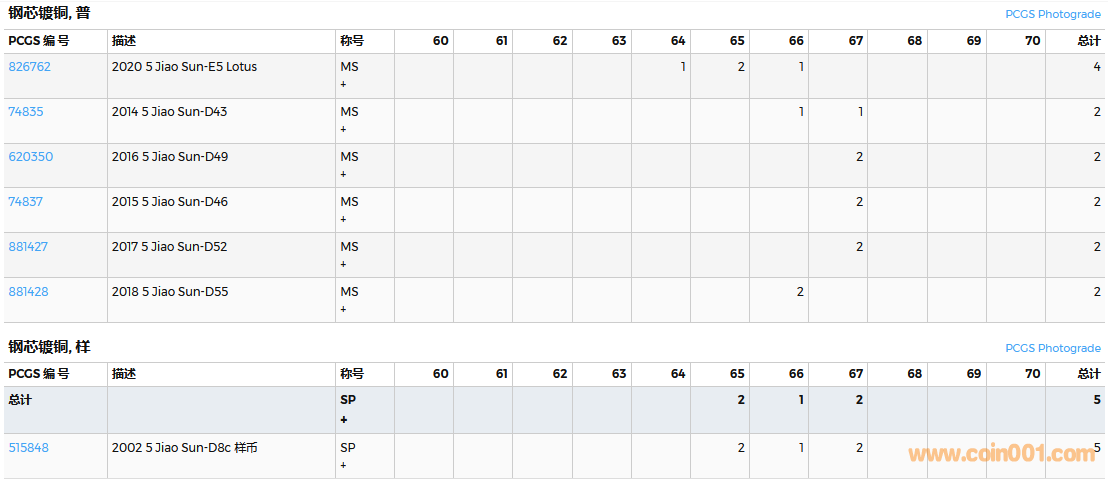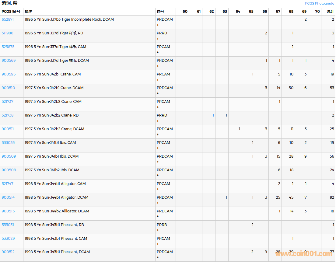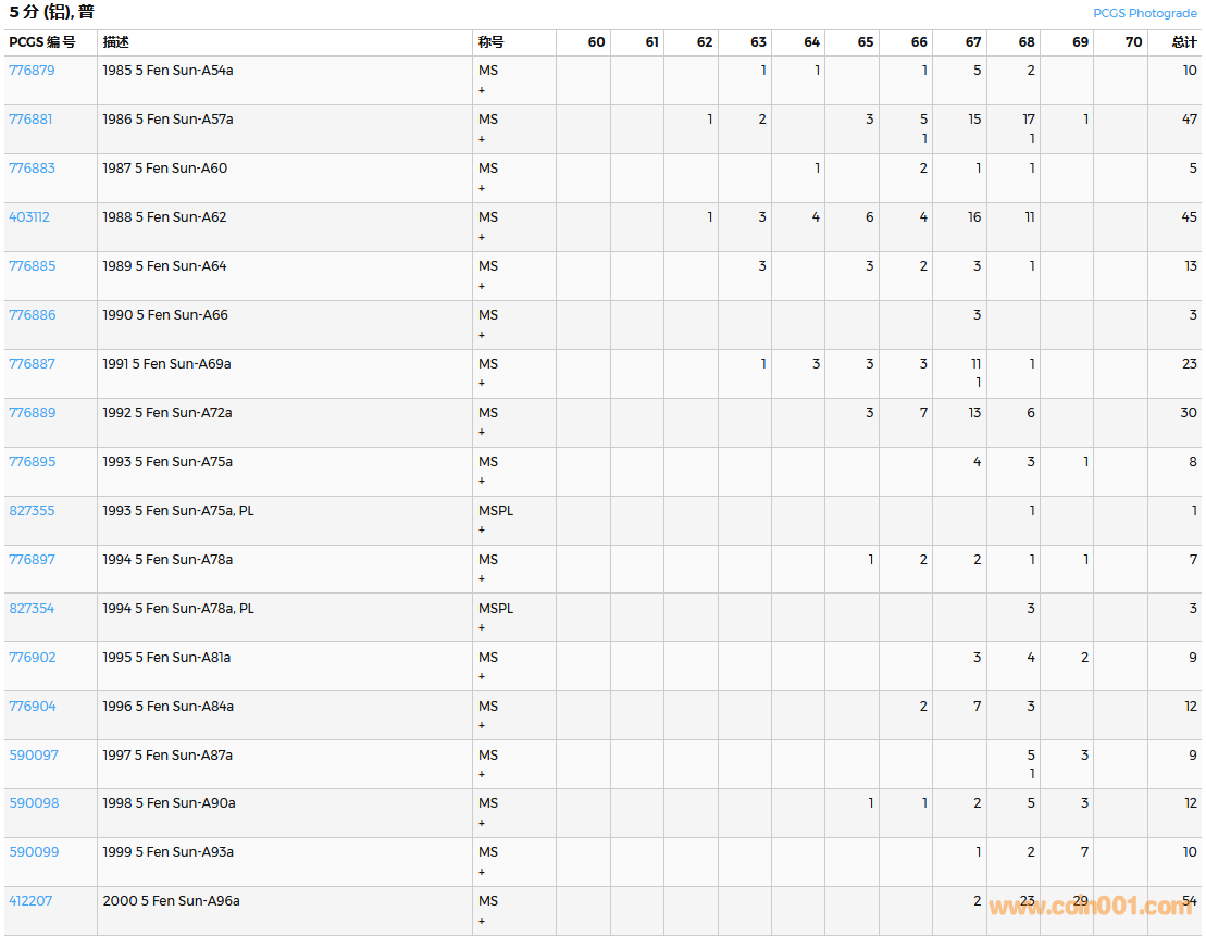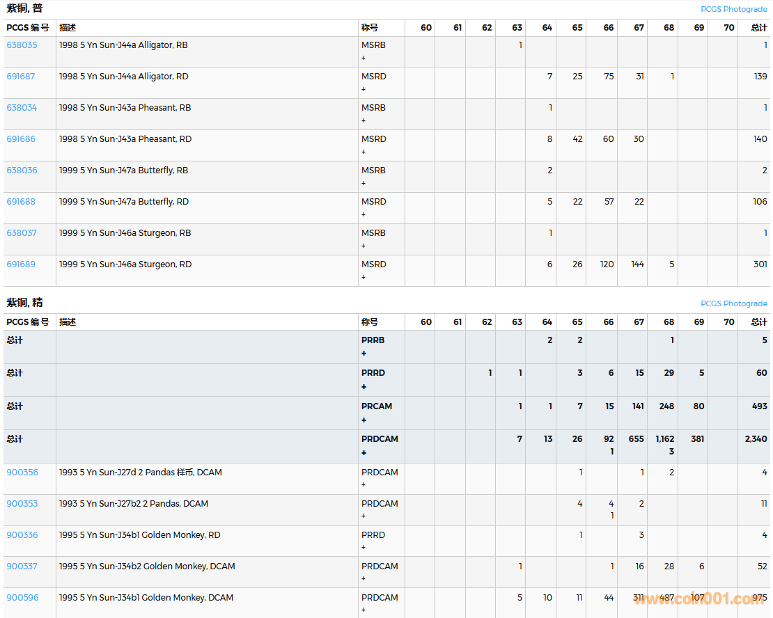 PCGS硬幣評(píng)級(jí)數(shù)量報(bào)告( ..