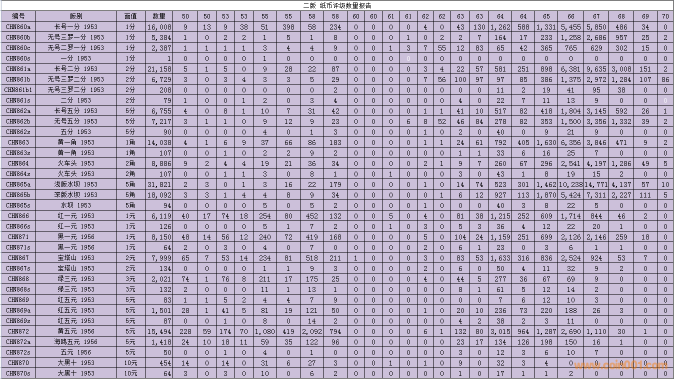 PMG紙幣評(píng)級(jí)數(shù)量報(bào)告
